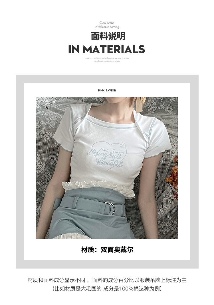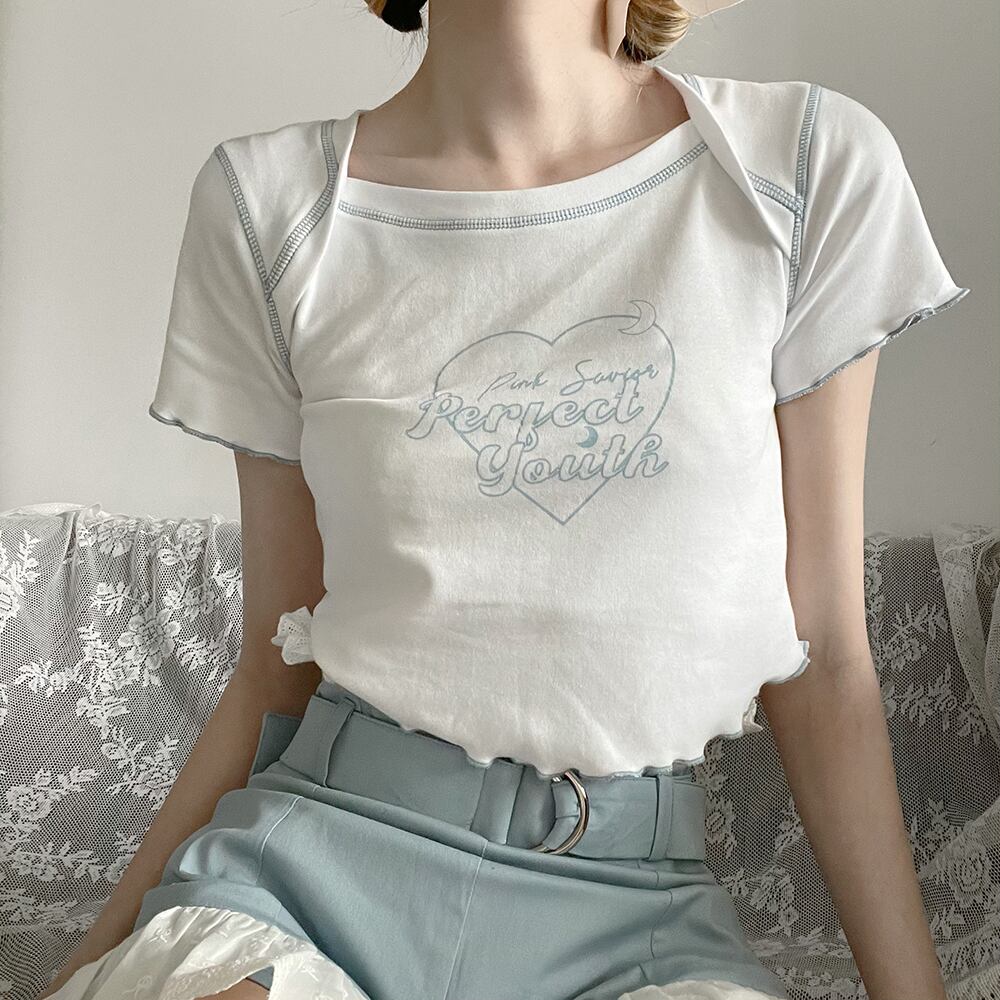 【送料無料】 pinksavior月野美しい秘密の拷問エッジヒットカラースリムプリント夏の弾力性のある肌にやさしい半袖 ショート ハーフスリーブ エラスティック 伸縮 サマー 夏物 PSTB47610455285