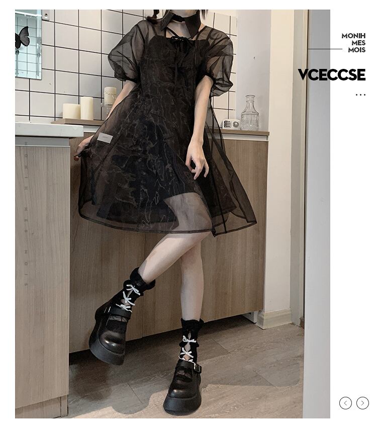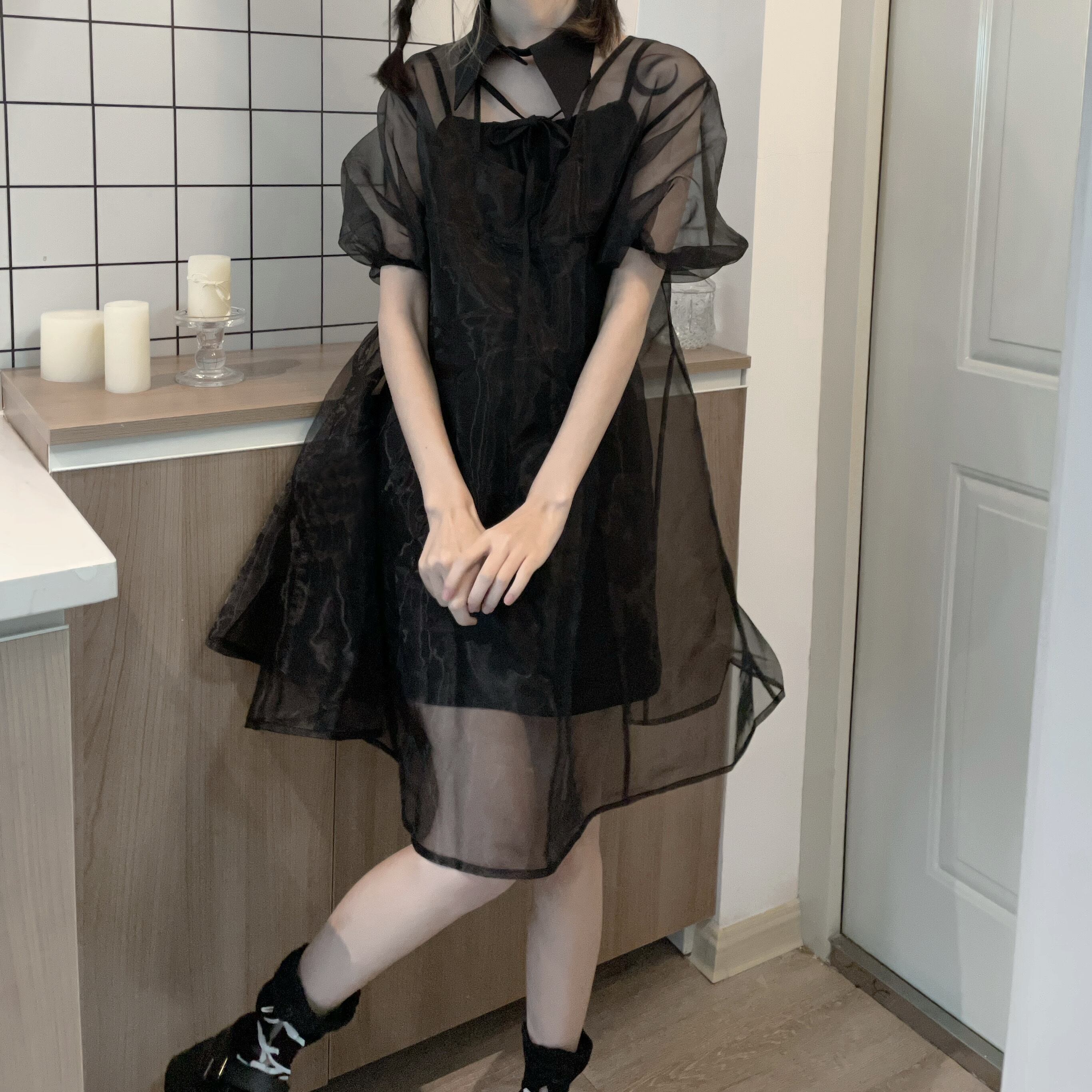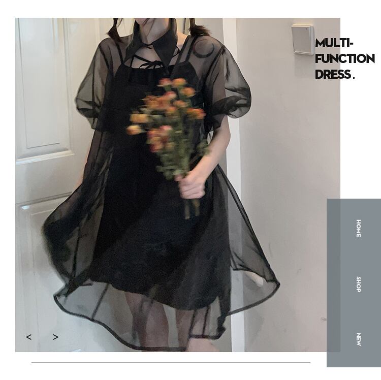 【送料無料】 pinksavior[Gl] 透明 gl 糸 気質 サスペンダー スカート ツーピース サマードレス ピンク 夏物 PSTB41368357090