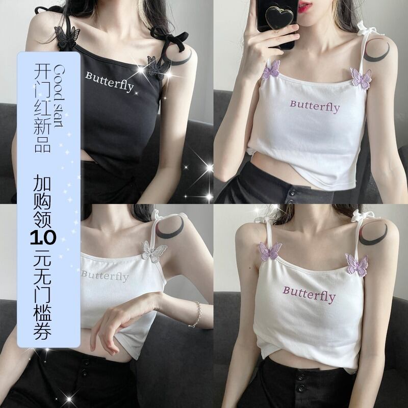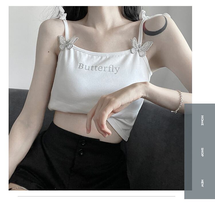 【送料無料】 立体バタフライ刺繍 グリッタープリント ショルダーストラップ 調節可能 伸縮性 オデルテクスチャー 半袖 ショート ピンク ハーフスリーブ エラスティック アジャスタブル PSTB33078654454