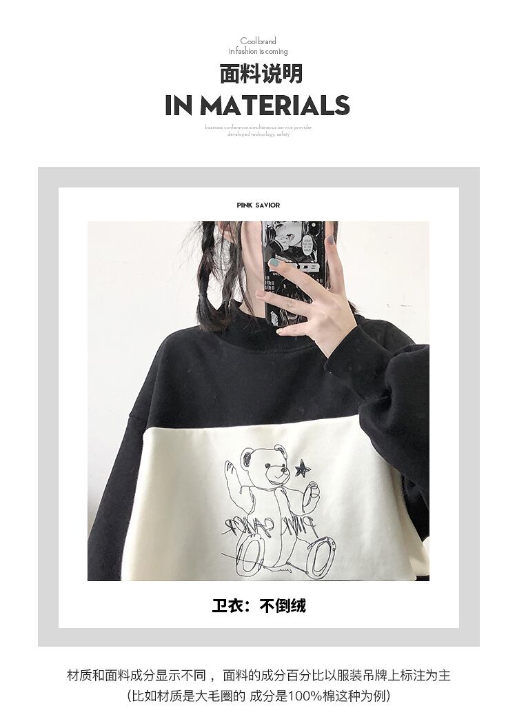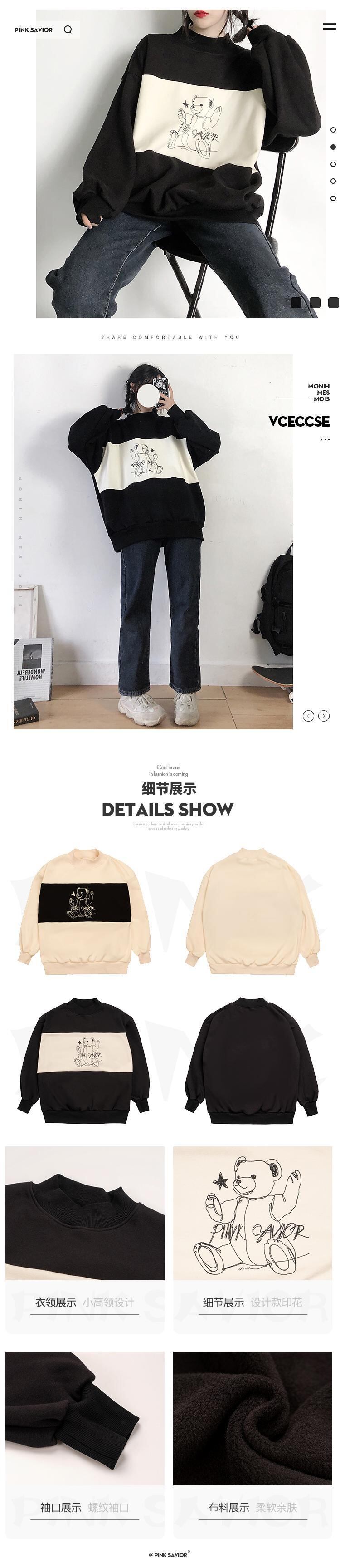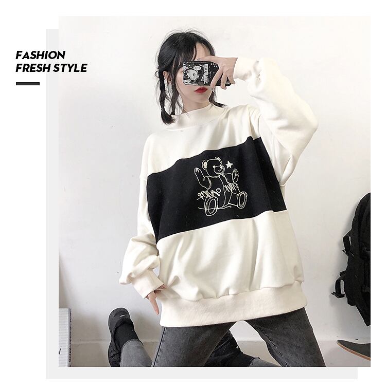 【送料無料】 pinksavior プラス ベルベット クリーム イエロー ステッチ ライン クマ 秋冬 レトロ 薄手 カジュアル スモール ハイカラー セーター オータム 秋物 ウィンター 冬物 PSTB16756317543