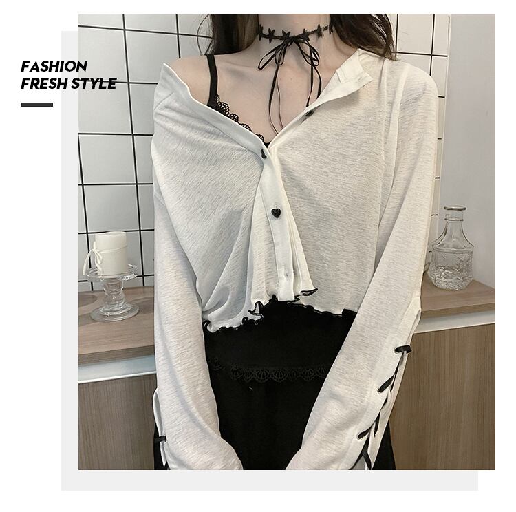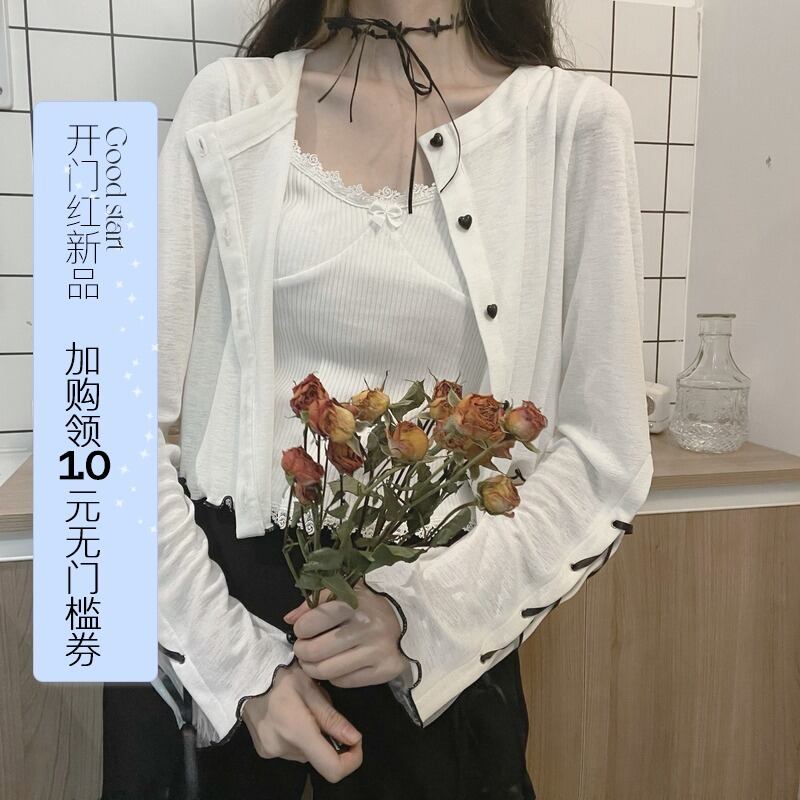 【送料無料】 pinksavior 黒 甘い夏 薄い 透明 日焼け止め 包帯 ラブ コントラスト カラー しっかり 手書き サイド 小さい カーディガン ブラック 大人ガーリー スウィート キュート カジュアル サマー 夏物 PSTB58808441046