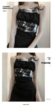 【送料無料】 pinksavior インク タイダイ ステッチ ラップ チェスト ストラップ スリム ブラック ドレス リトル ブラック ドレス PSTB1328794270