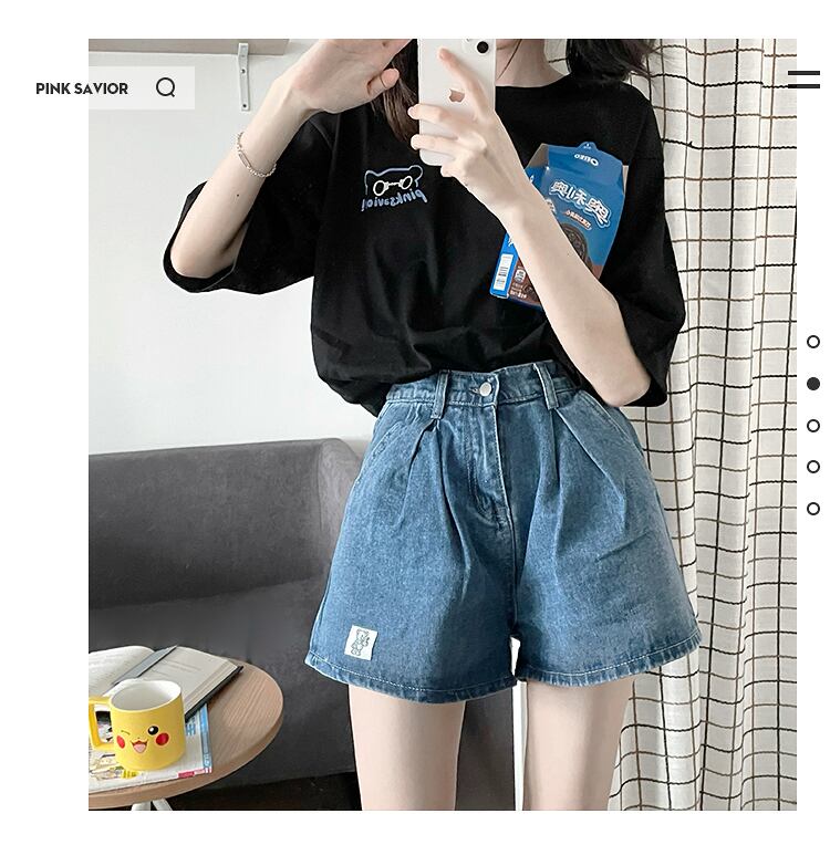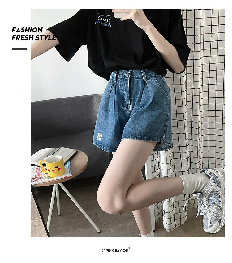 【送料無料】 pinksavior 夏に属する ダークブルー ライトブルー デニムボーイ ルーズパンツ レッグベアー 織りラベル ショーツ ロング サマー 夏物 ブルマー PSTB82706209956