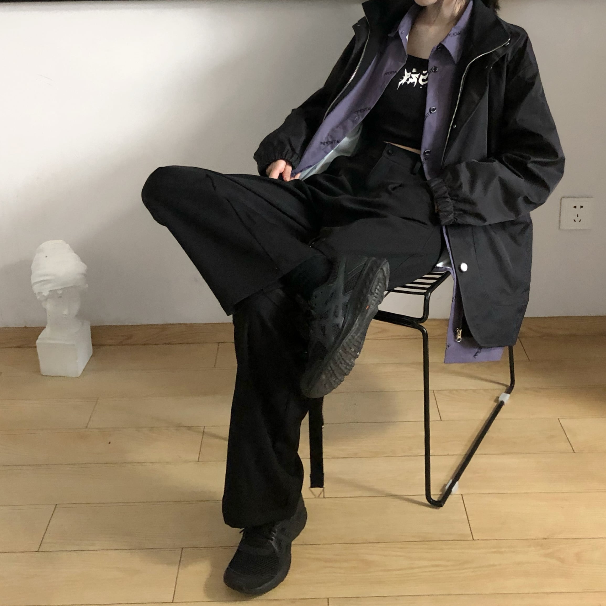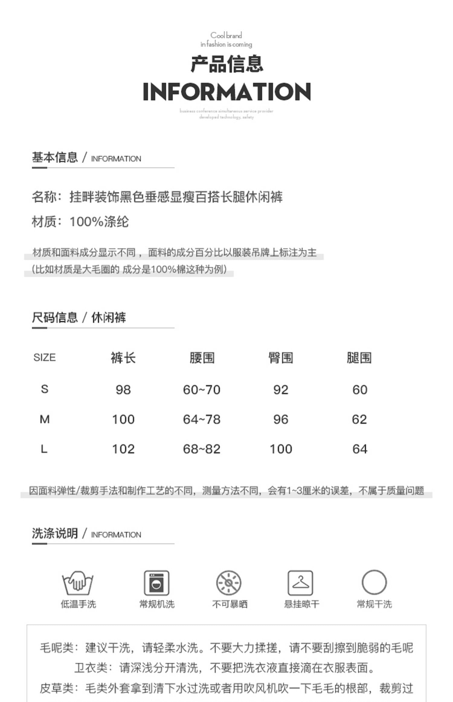 【送料無料】 pinksavior サイド飾り 黒いドレープが薄くて万能なロングレッグカジュアルパンツ ブラック PSTB56897802923