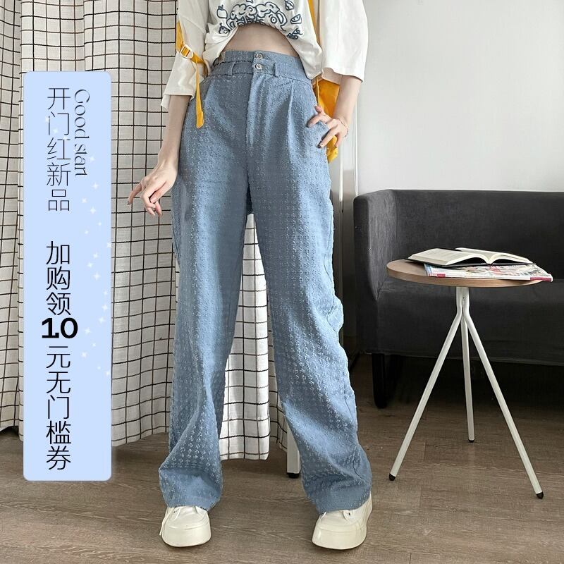 【送料無料】 pinksavior デニム パターン スペシャル ダブル ウエスト ロゴ バックル装飾 ロング レッグ ブルーとブラックのデニム パンツ PSTB75696253759