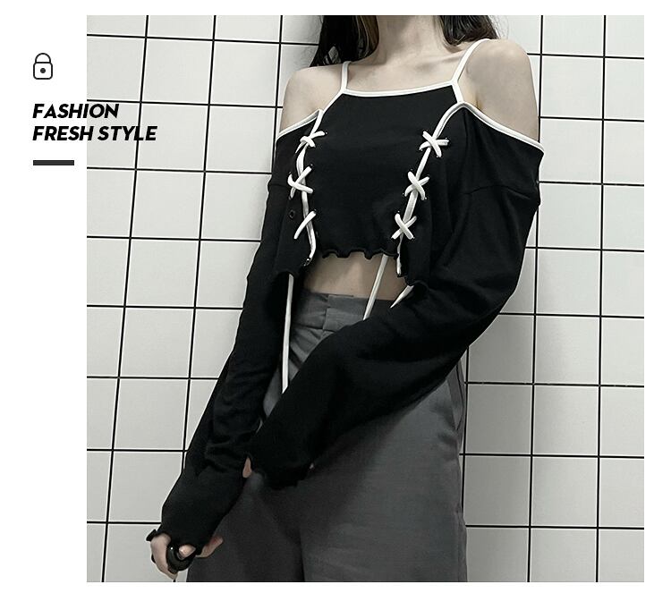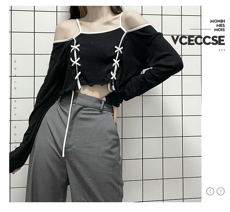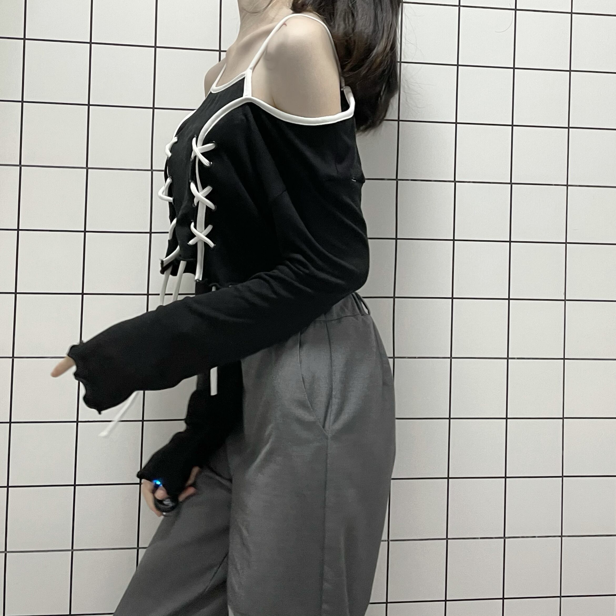 【送料無料】 pinksavior ストラップデザイン コントラストカラー BLACK AND WHITE ストレッチ ストラップレス カジュアル 春夏 トップス ホワイト ブラック スプリング 春物 サマー 夏物 PSTB80543067623
