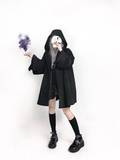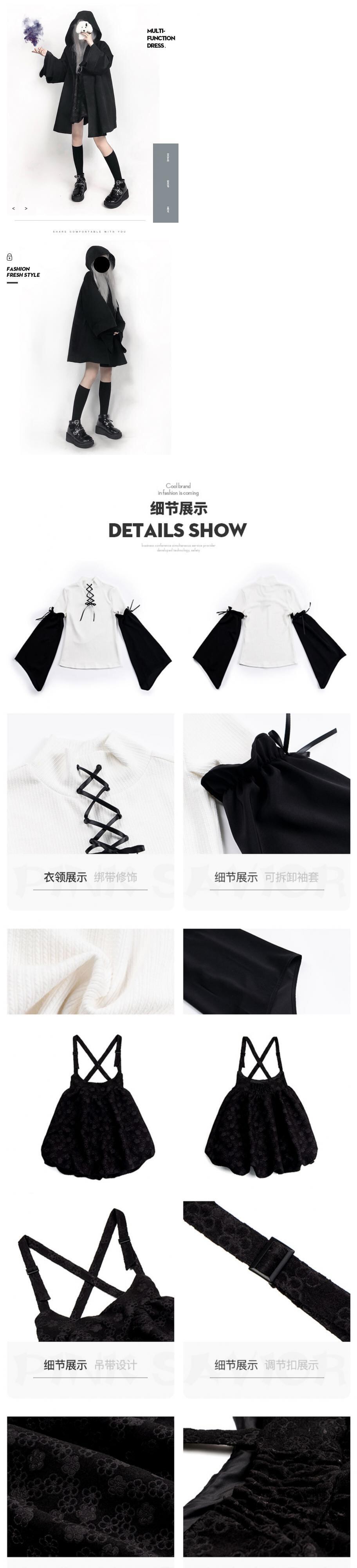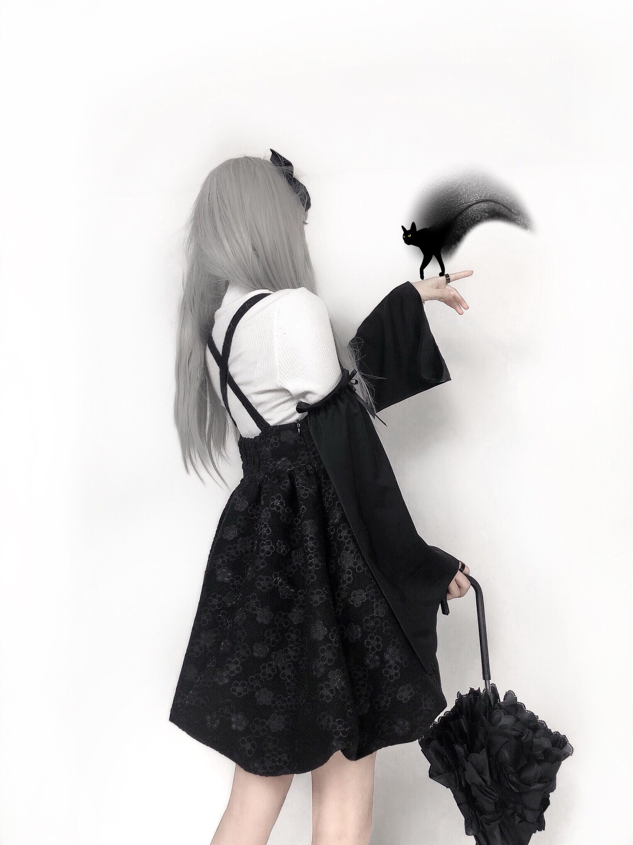 色:ホワイトタイトップ(プラス袖飾り),スリングフラワーバッドスカート,黒のウールのマント