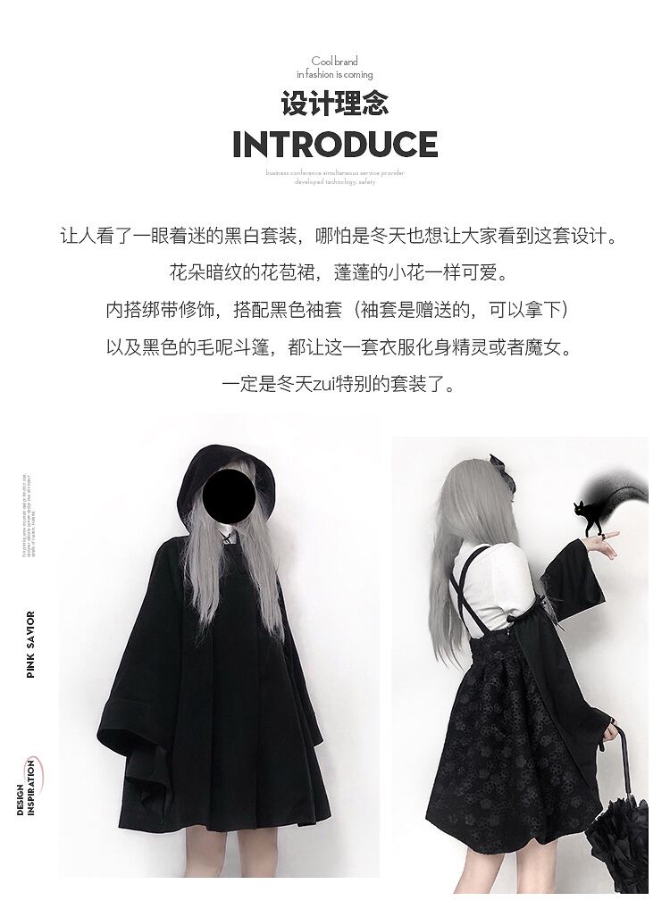 【送料無料】 pinksavior魔女ラリー包帯トップ+ダークパターンスリングフラワーバッドスカートウールマントウィンタースーツ 冬物 フラワーデザイン PSTB6543014037