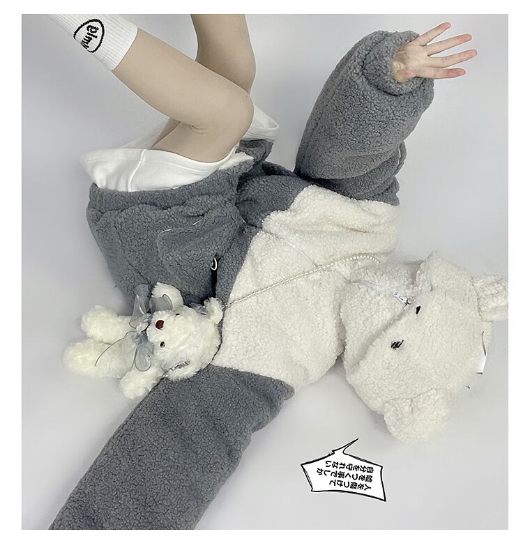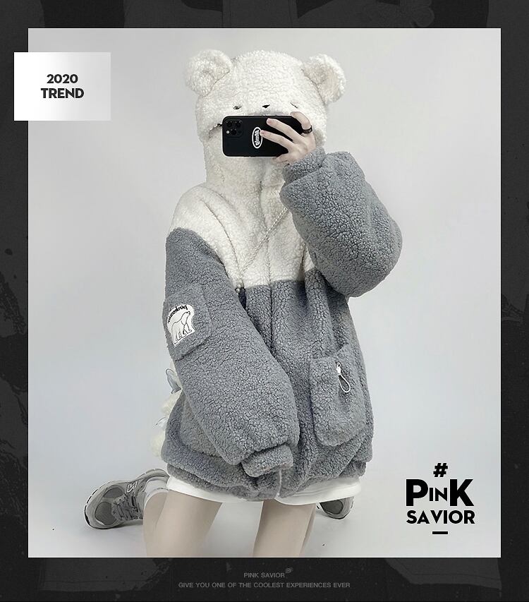 【送料無料】 pinksavior シャイ ベア秋と冬の厚いラム ウール デザイン フード付きジッパー ジャケット新しい 2021 オータム 秋物 ウィンター 冬物 PSTB80768388266