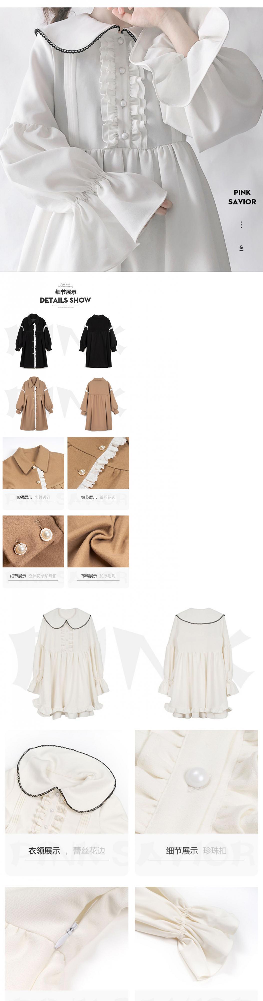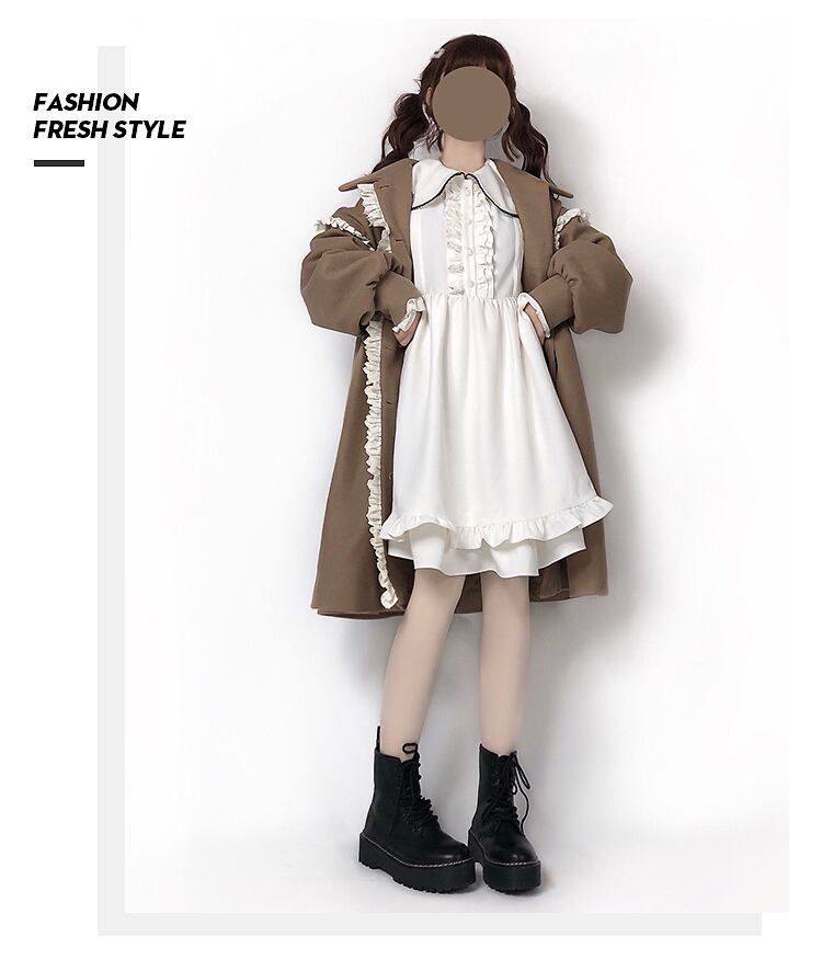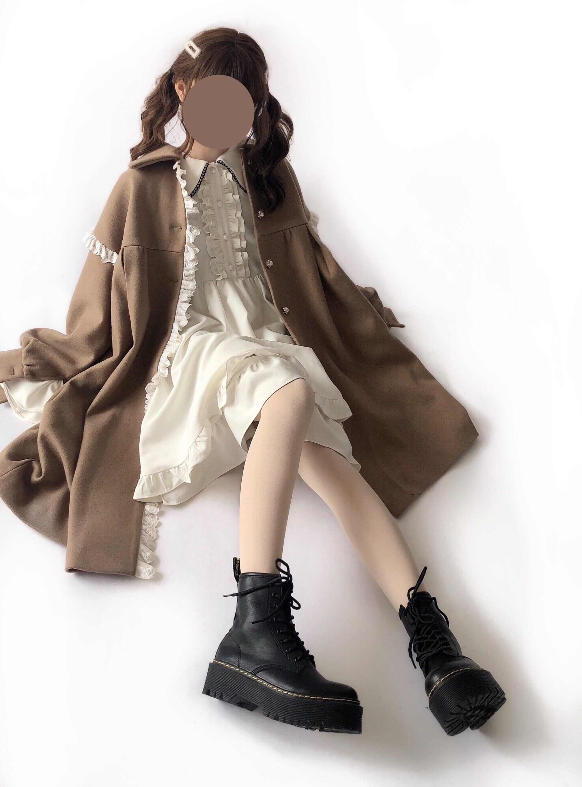 色:ブラックウールコート,カーキウールコート,白いドレス