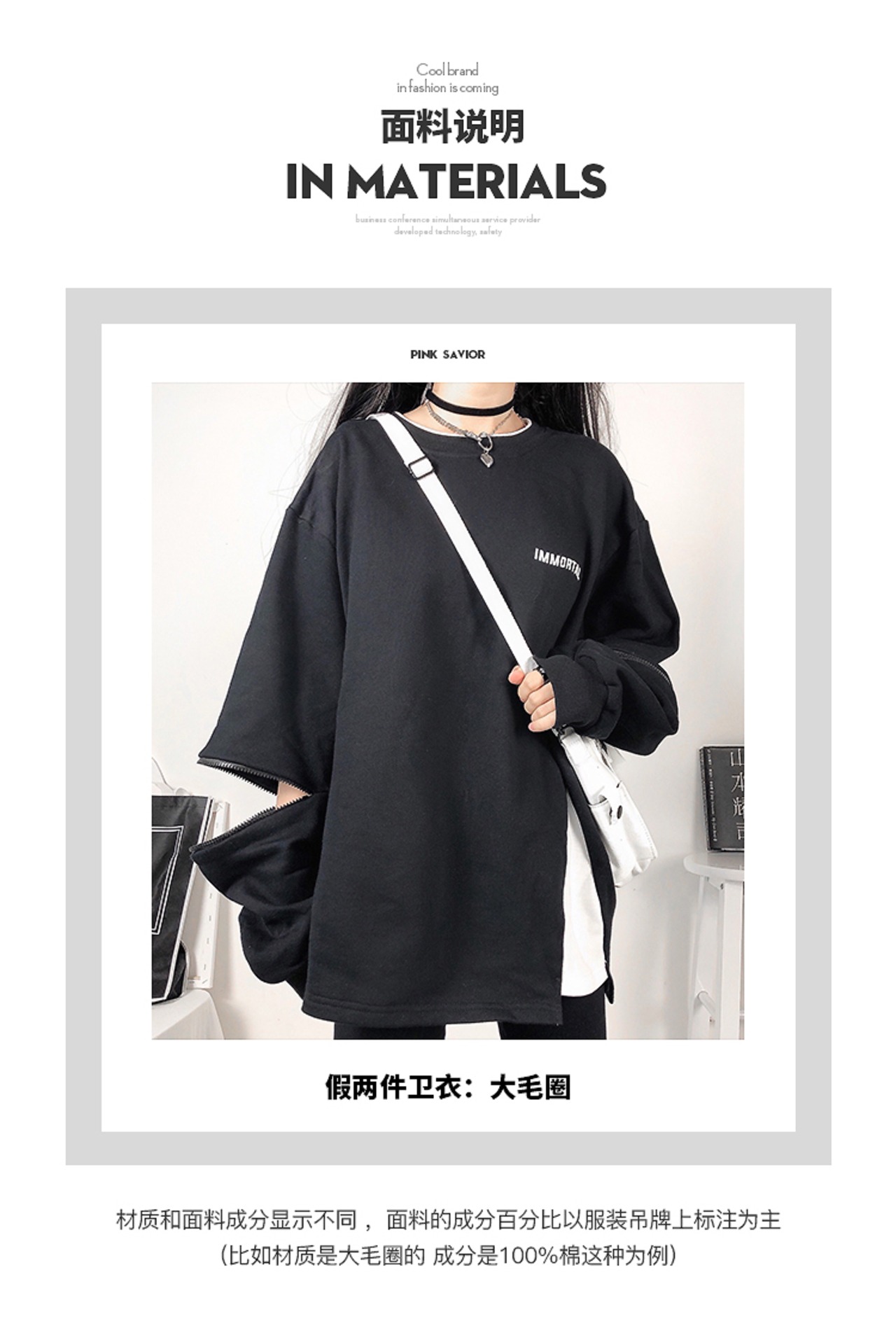 【送料無料】 pinksavior オープン スリーブ ステッチ フェイク 2 枚カジュアル イモータル ストリート ワイルド テリー セーター PSTB10579779940