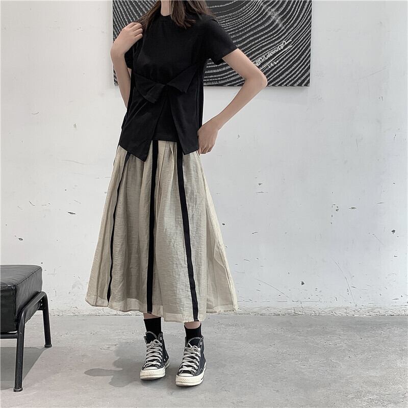 BLACK AND WHITEのダークストライプのスカート、夏の新しいガーゼスカート、Aラインのスカート、eseスタイルの冷たい風 ホワイト ブラック サマー 夏物 BWTB41887936178
