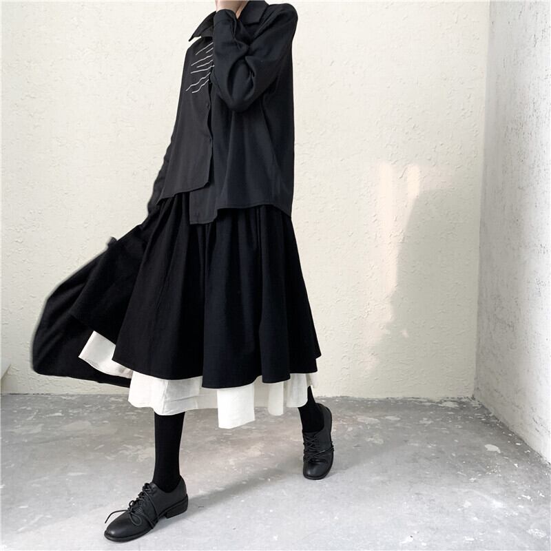 WHITE ANDBLACKデザインスカートレディースダブルレイヤー厚さミドル丈スカートニッチ新スタイル ホワイト ブラック BWTB83716894202