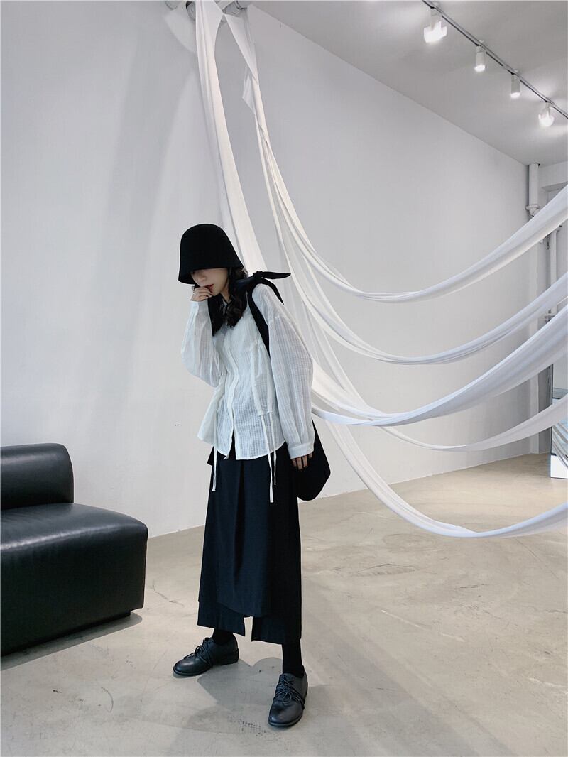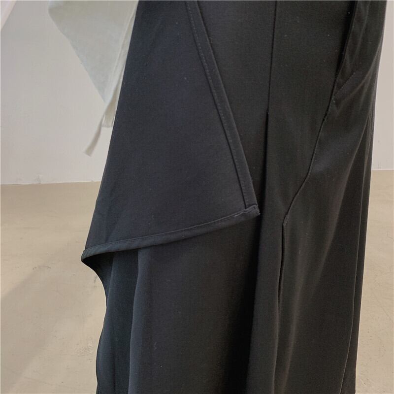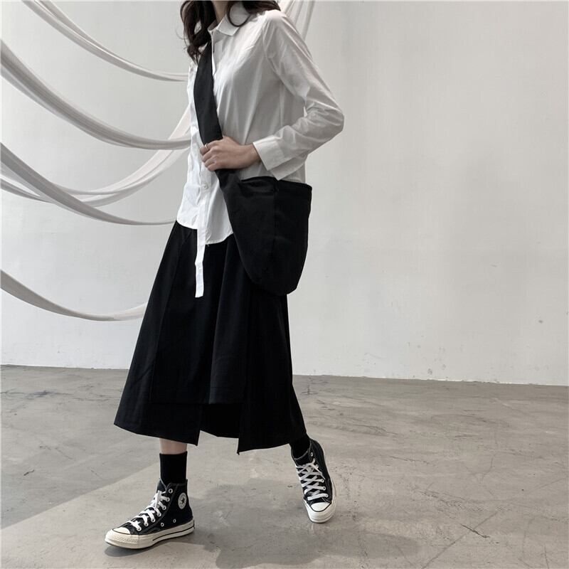 BLACK ANDWHITEダークブラックスカート女性イレギュラーデザインeseニッチミドル丈スカート春新作スタイル ホワイト スプリング 春物 BWTB19738963237
