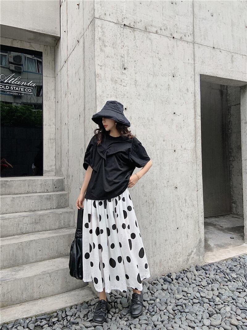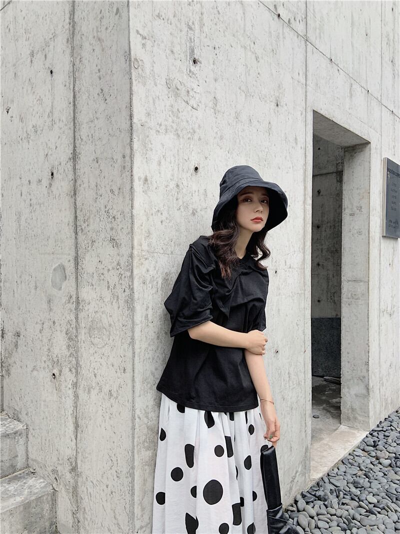 ダークフォールドデザインの黒の半袖女性ルーズTシャツ夏の婦人服 ショート ブラック ハーフスリーブ サマー 夏物 BWTB77391719289