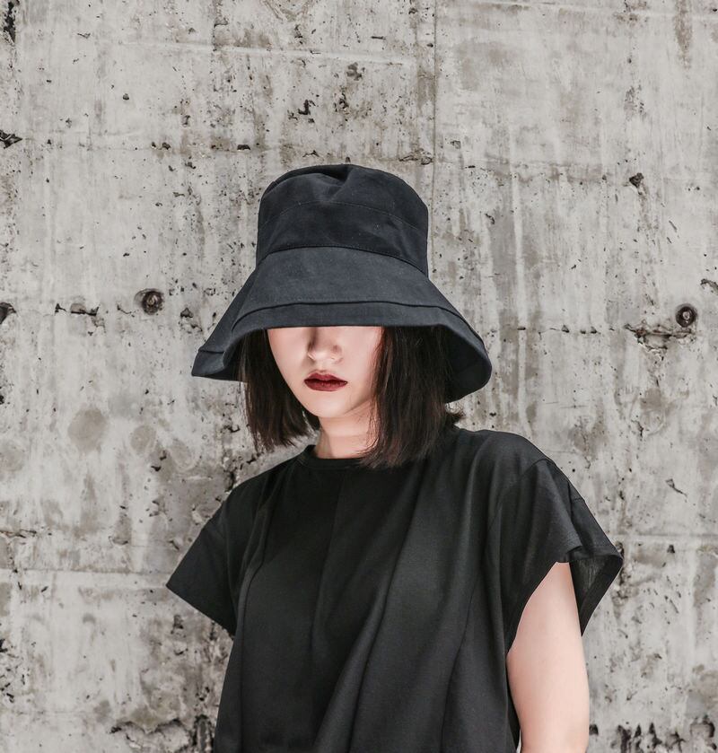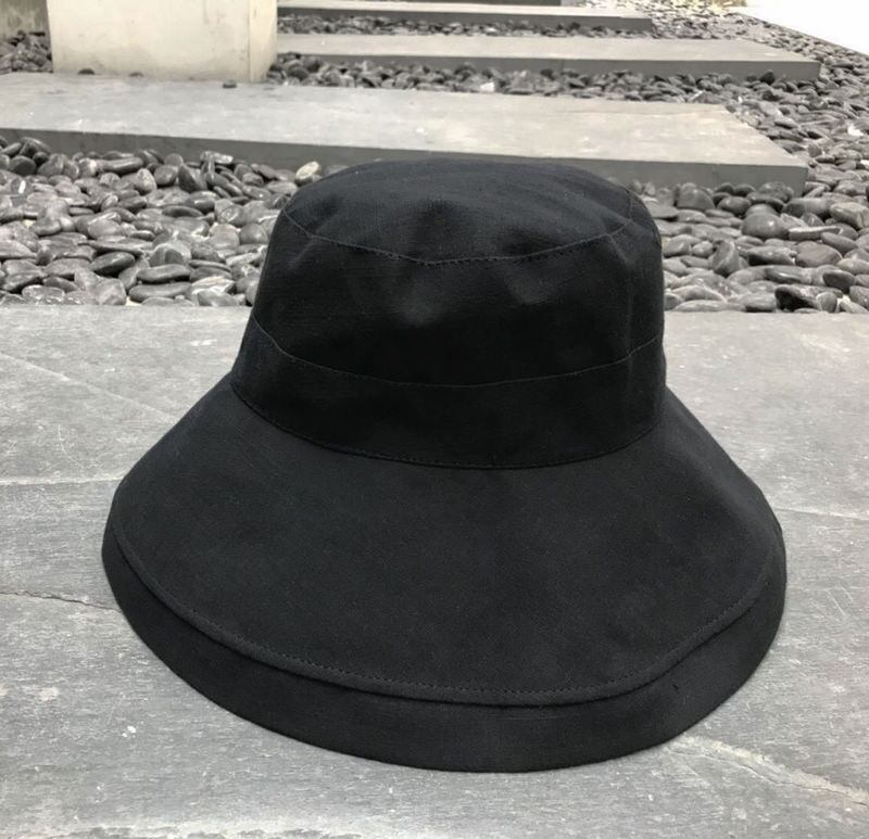 黒と白の漁師の帽子女性の暗い大きなつばの帽子日焼け止め綿麻盆地の帽子 ブラック コットン BWTB69794680189