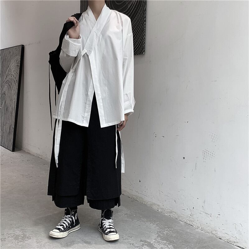 黒と白の濃い黒のeseシャツルーズネクタイ男性と女性のカップルルーズ秋の新しい綿 ホワイト ブラック コットン オータム 秋物 BWTB66314837963