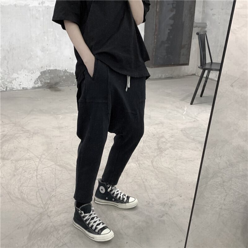 BLACK AND WHITEのダークカジュアルパンツバギーパンツ、ビッグクロッチパンツ、シンパンツ、ナインポイントパンツ ホワイト ブラック BWTB21949996572