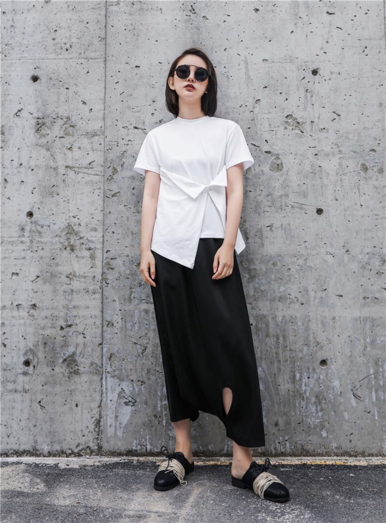 BLACK ANDWHITEオリジナルダークブラックウィメンズアシンメトリー袴2018夏新作ブルマ9点パンツ ホワイト サマー 夏物 ショーツ ブルマー BWTB93167283313