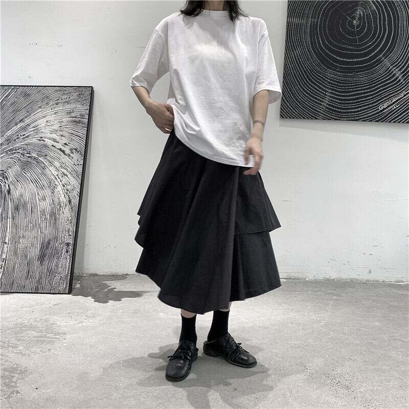 BLACK ANDWHITEダークスモールハイネック半袖Tシャツメンズ&レディースカップルワイルドサマーニュールーズ ホワイト ブラック 夏物 BWTB24064553346