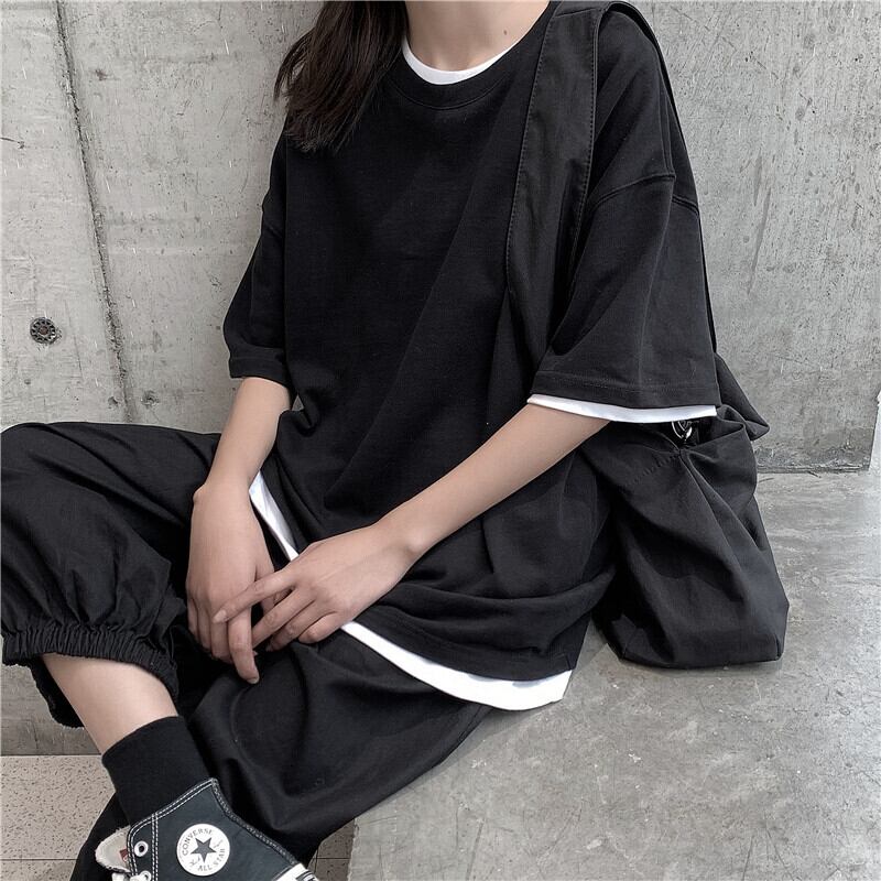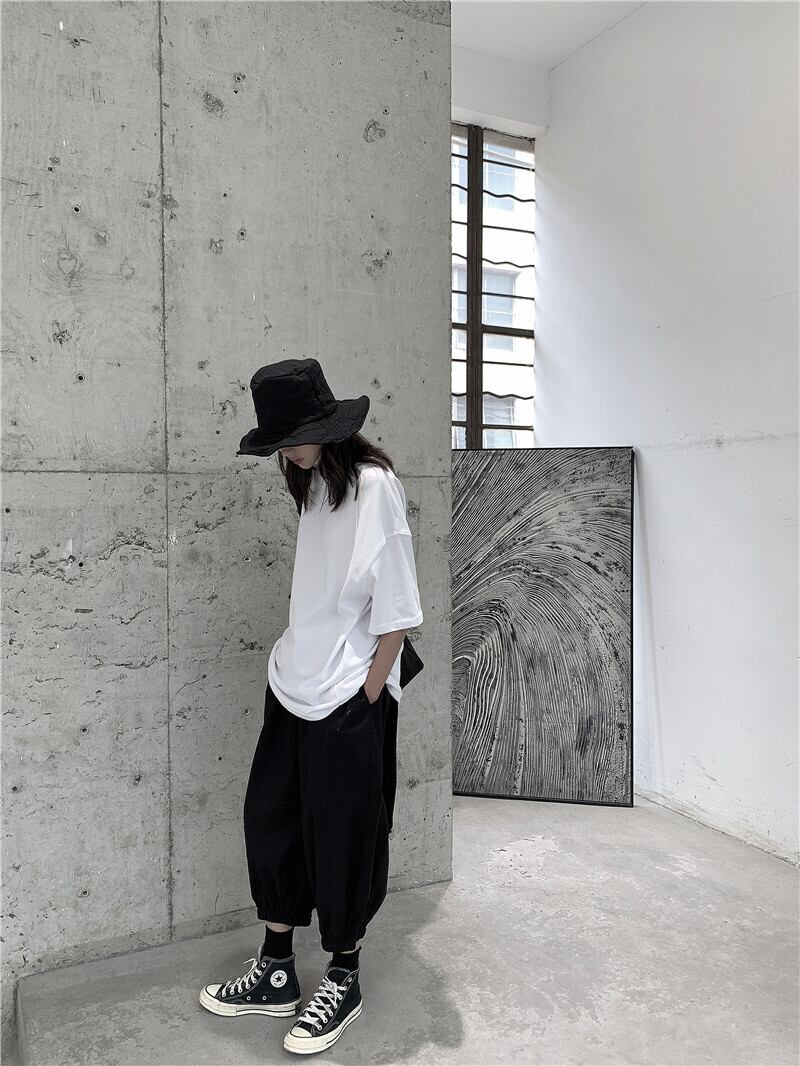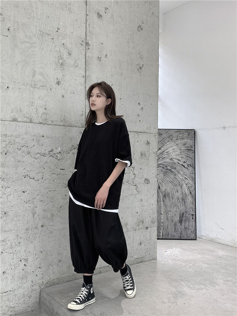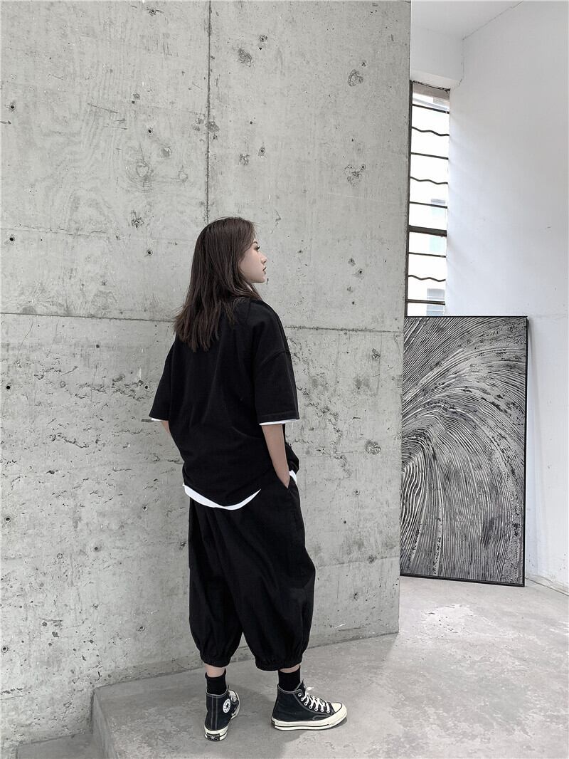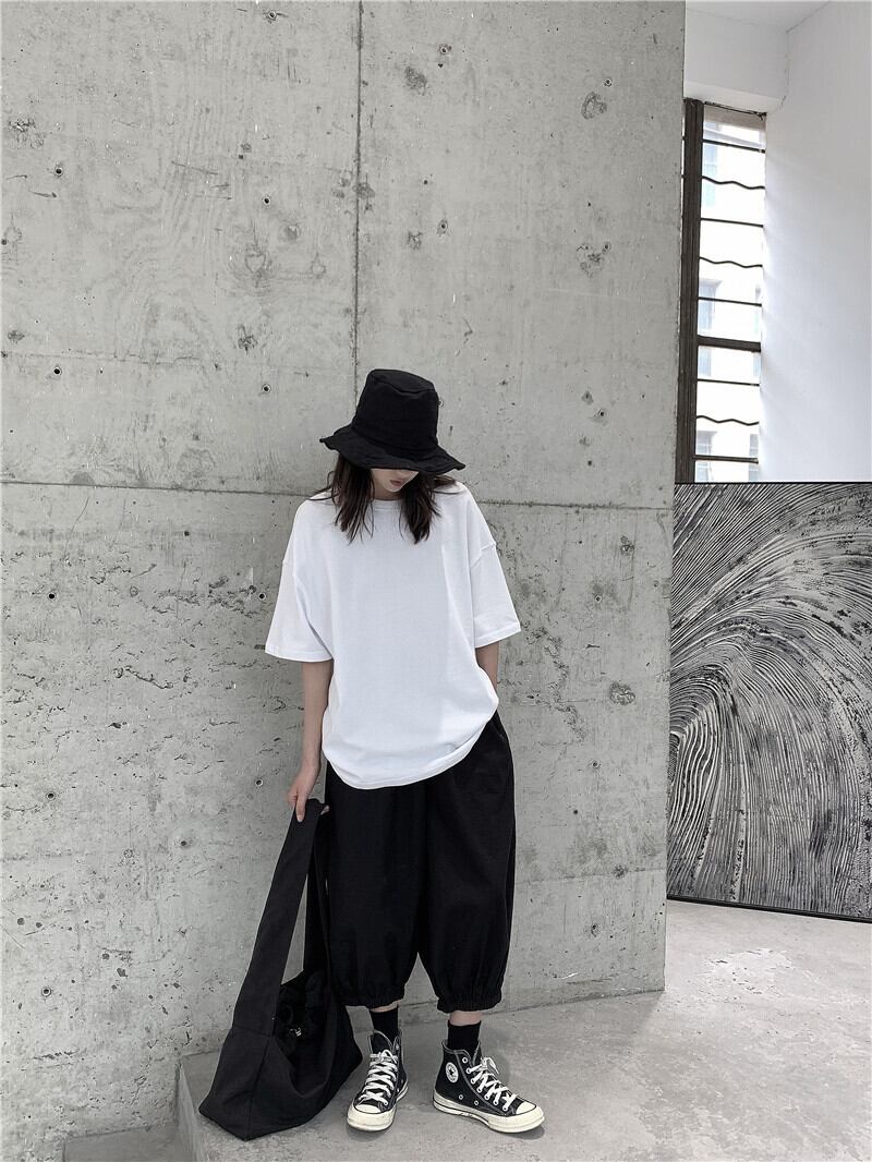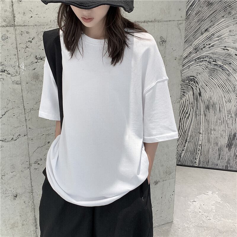 BLACK AND WHITEのダークシンプルなT半袖の男性と女性のカップルは野生の綿を緩めます ホワイト ブラック コットン BWTB63474950418