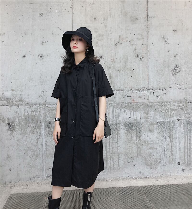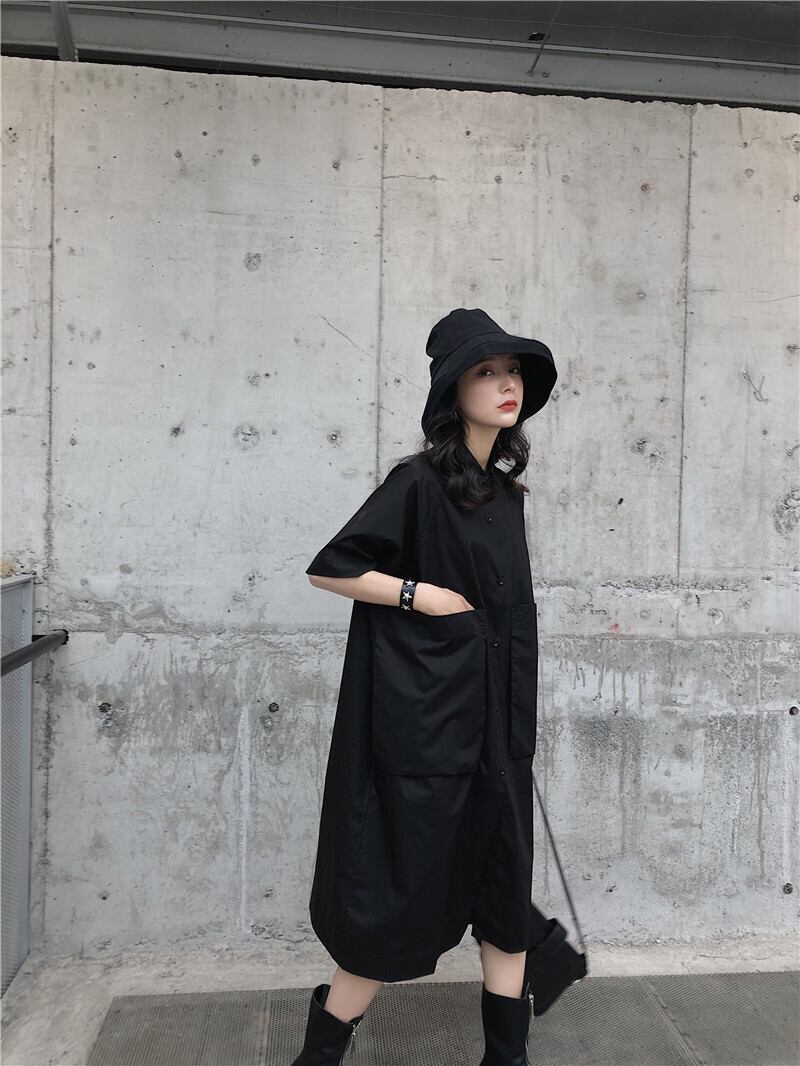 BLACK ANDWHITEダークオリジナルデザインシャツワンピースシンプルルーズ半袖シャツワンピース夏 ショート ホワイト ブラック ハーフスリーブ サマー 夏物 BWTB66623368092