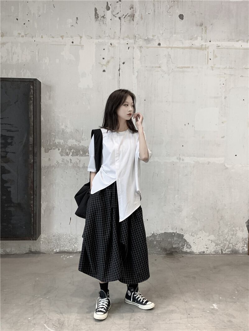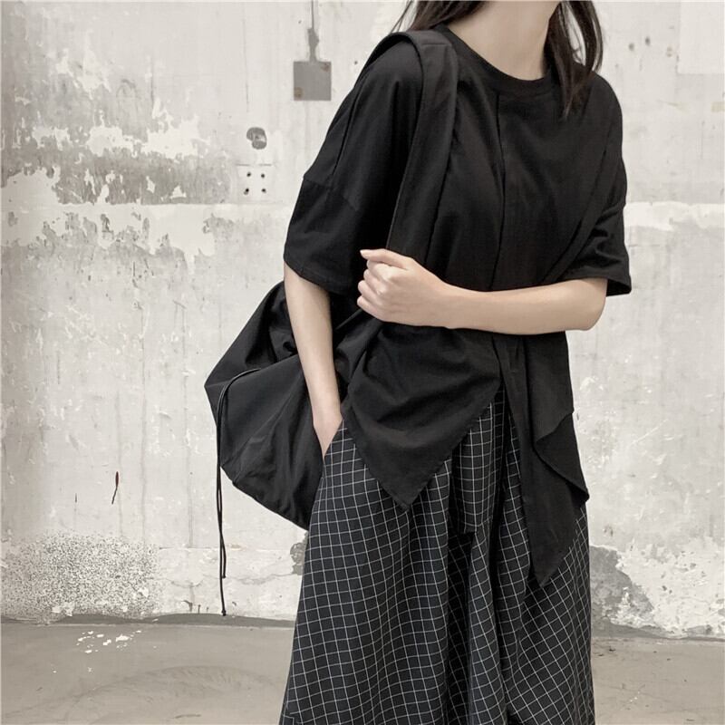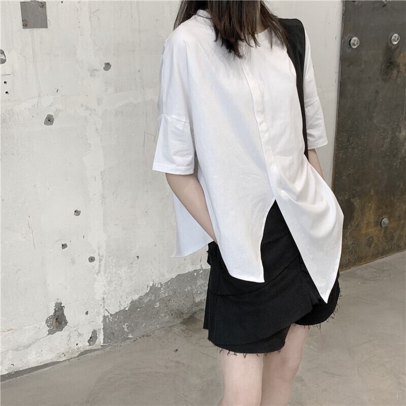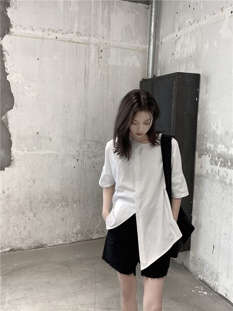 BLACK ANDWHITEダークイーズセックスコールドアシンメトリースプリット半袖レディースサマーTシャツ山本宏 ホワイト ブラック 夏物 BWTB95746273361