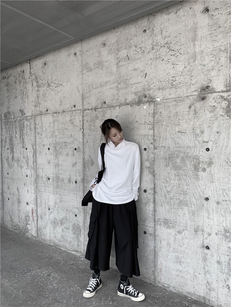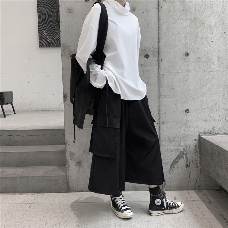 BLACK ANDWHITEダークビッグポケットオリジナル自家製ルーズカジュアルパンツ9点パンツ男女カップル ホワイト ブラック BWTB82196850464