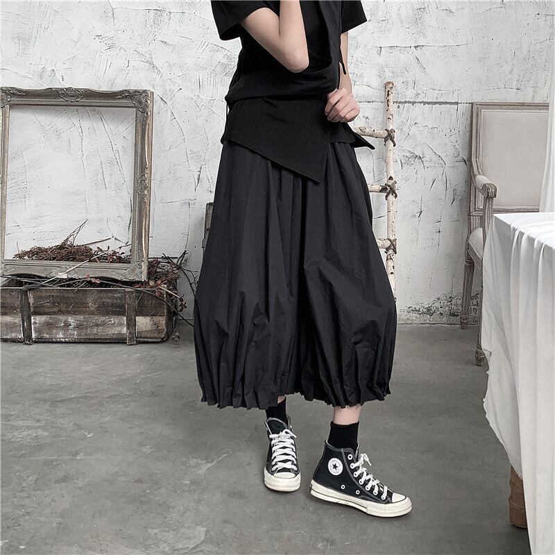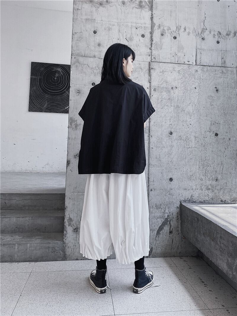 BLACK AND WHITEのダーク自家製プリーツパンツルーズなスタイルのコールドウィンドクロップドパンツ ホワイト ブラック BWTB72435381947
