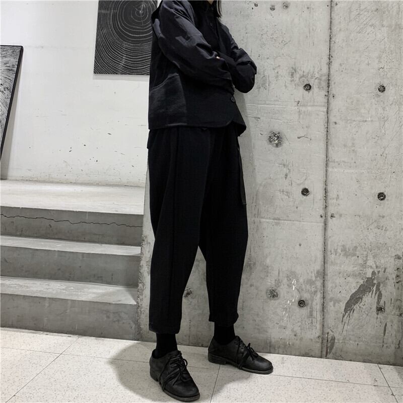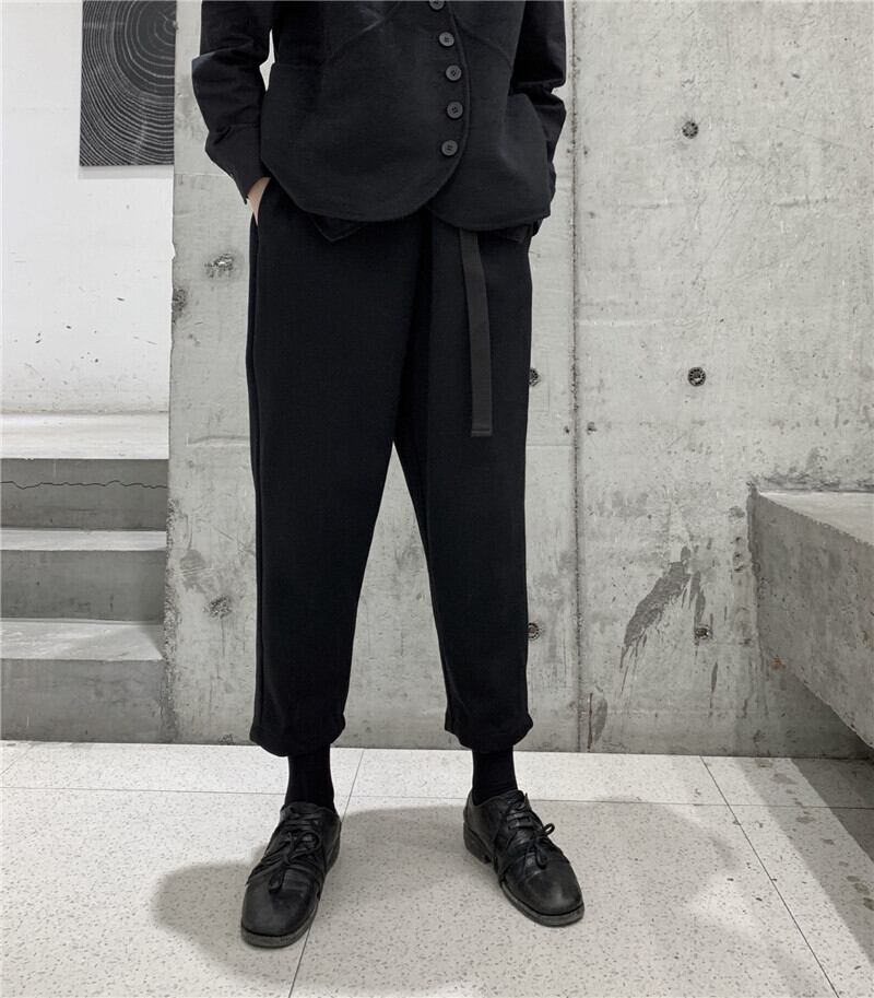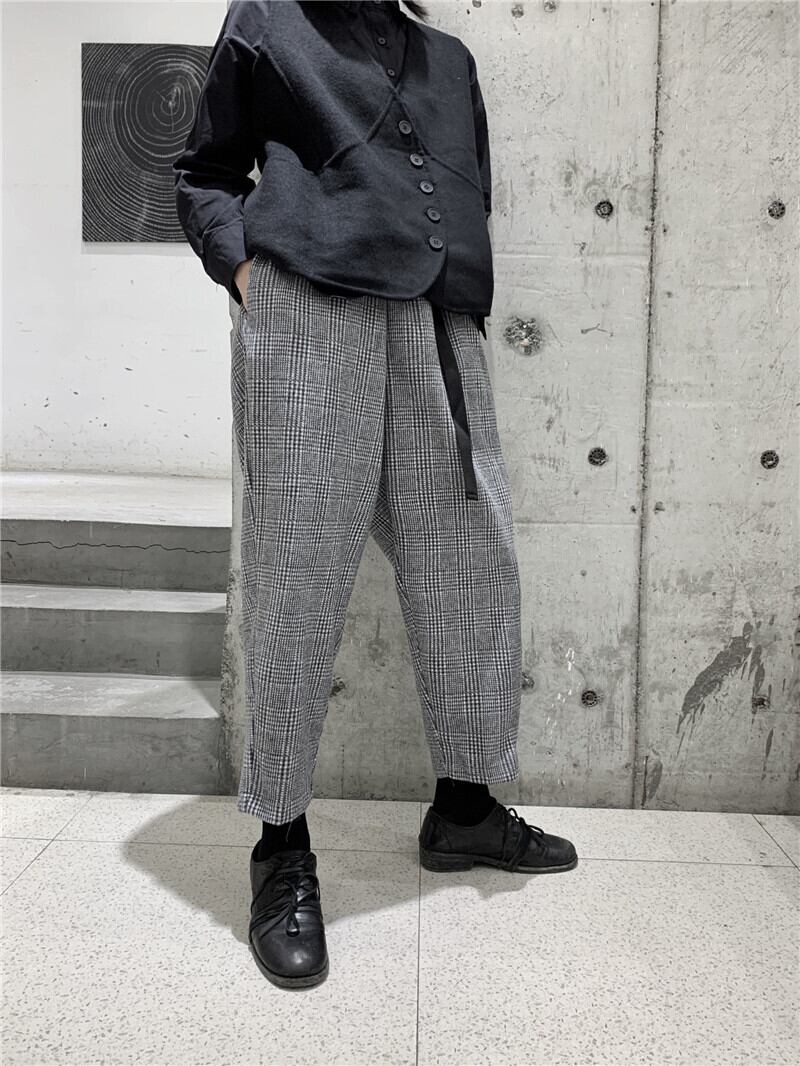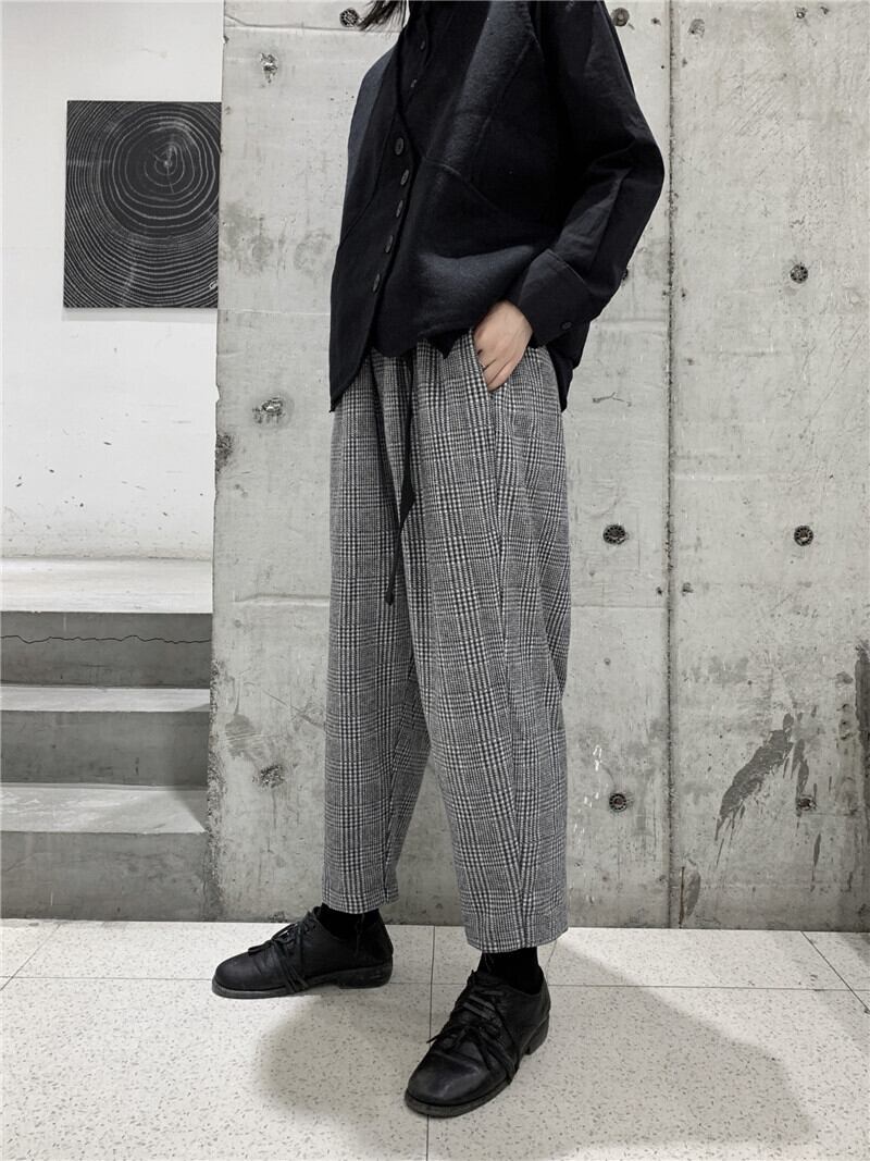 黒と白のダークカジュアルパンツウールパンツ女性と男性のカップルは、秋と冬の薄いカジュアルパンツを厚くしました ホワイト ブラック オータム 秋物 ウィンター 冬物 BWTB5070803273