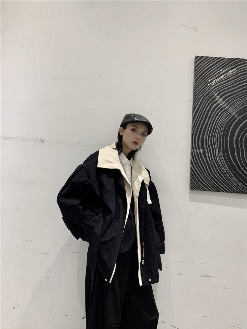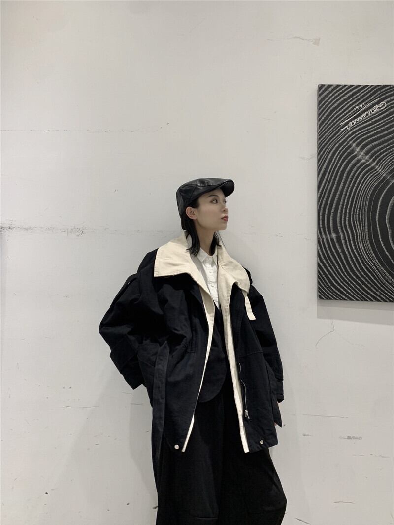 ダークブラックコットンコート女性ショート男性カップルルーズシックフェイクツーピースコットンコート香港スタイルルーズツーリングレトロ BWTB46334015062