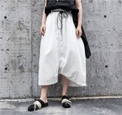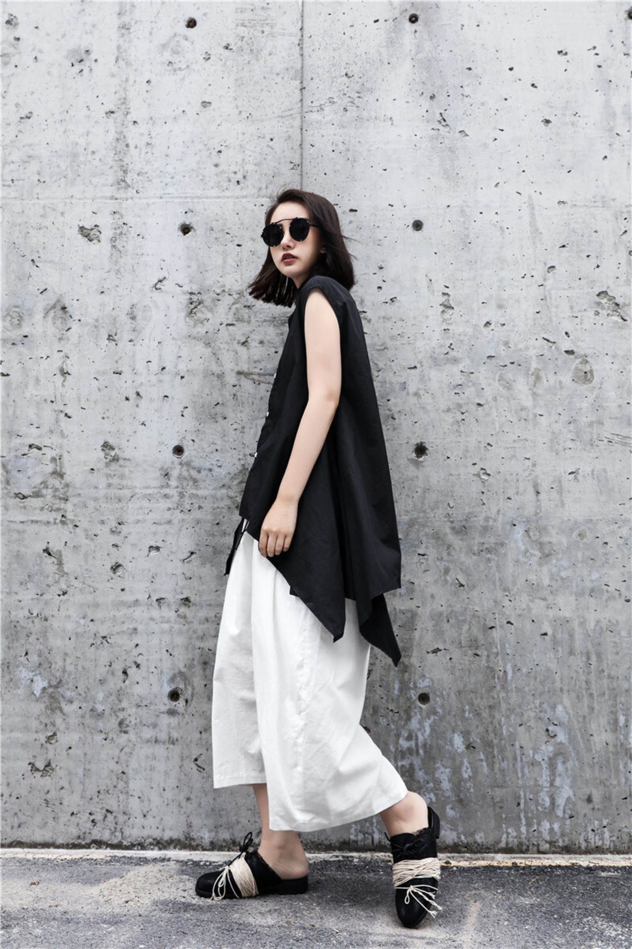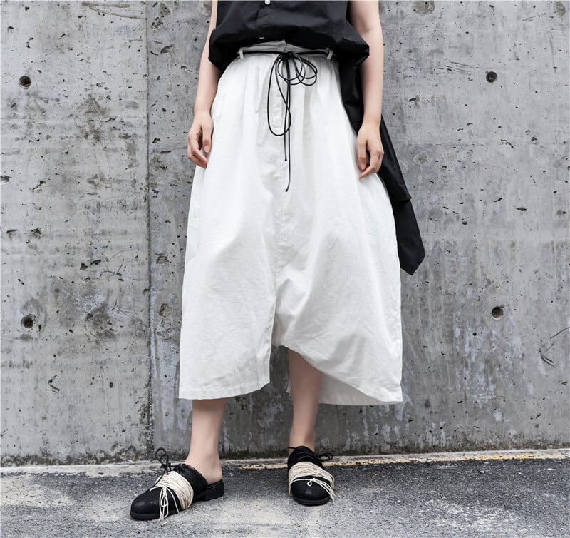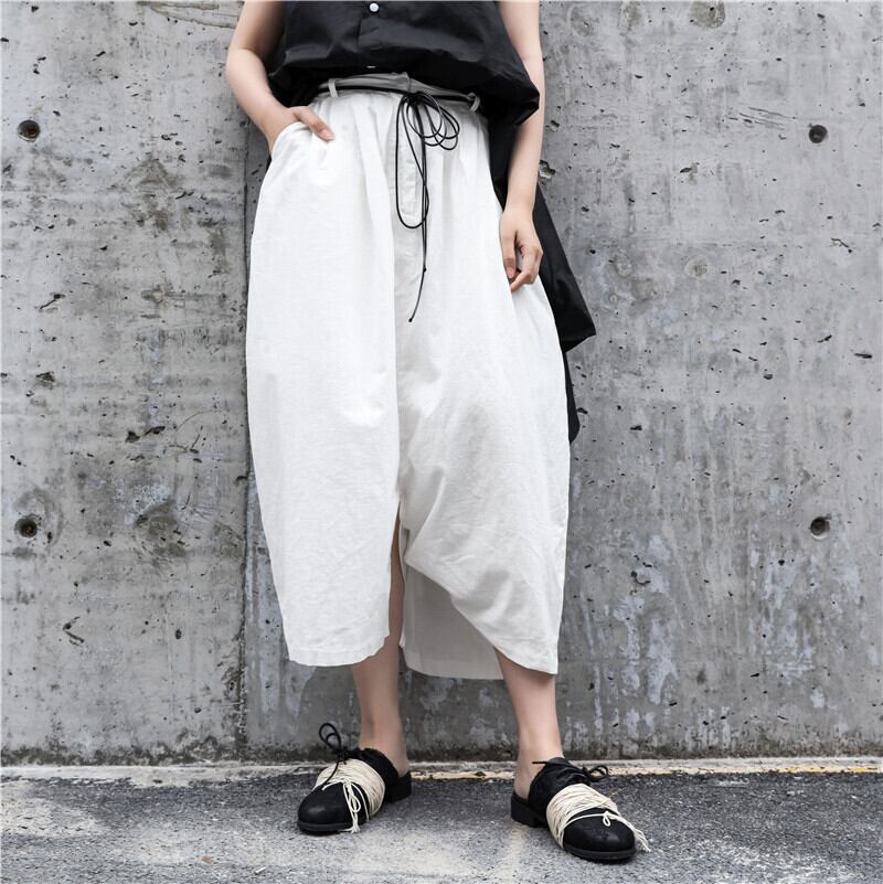 BLACK AND WHITEeseレディースリネンコットンワイドレッグパンツルーズカジュアルパンツイレギュラーナインポイントパンツレディース ホワイト ブラック BWTB61364407106
