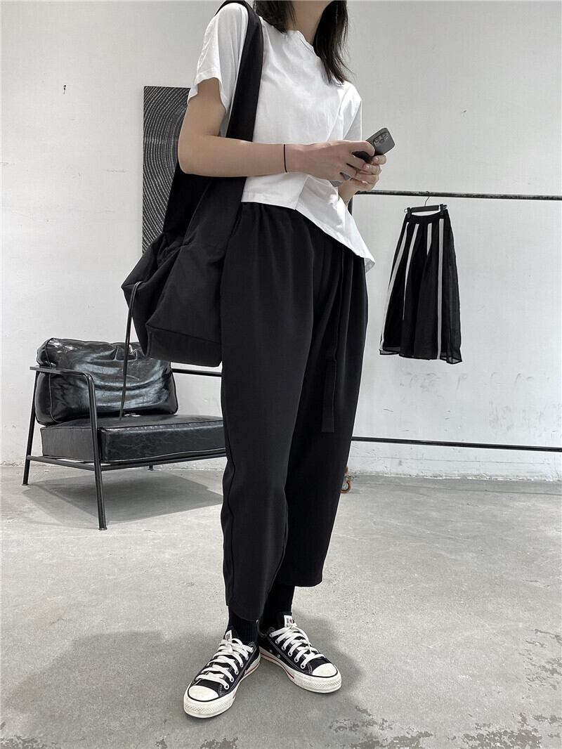 BLACK AND WHITEのダークスラックスは薄く見えて垂れ下がっています!ナインポイントパンツは薄手の夏の新作オリジナル ホワイト ブラック サマー 夏物 BWTB7878287516