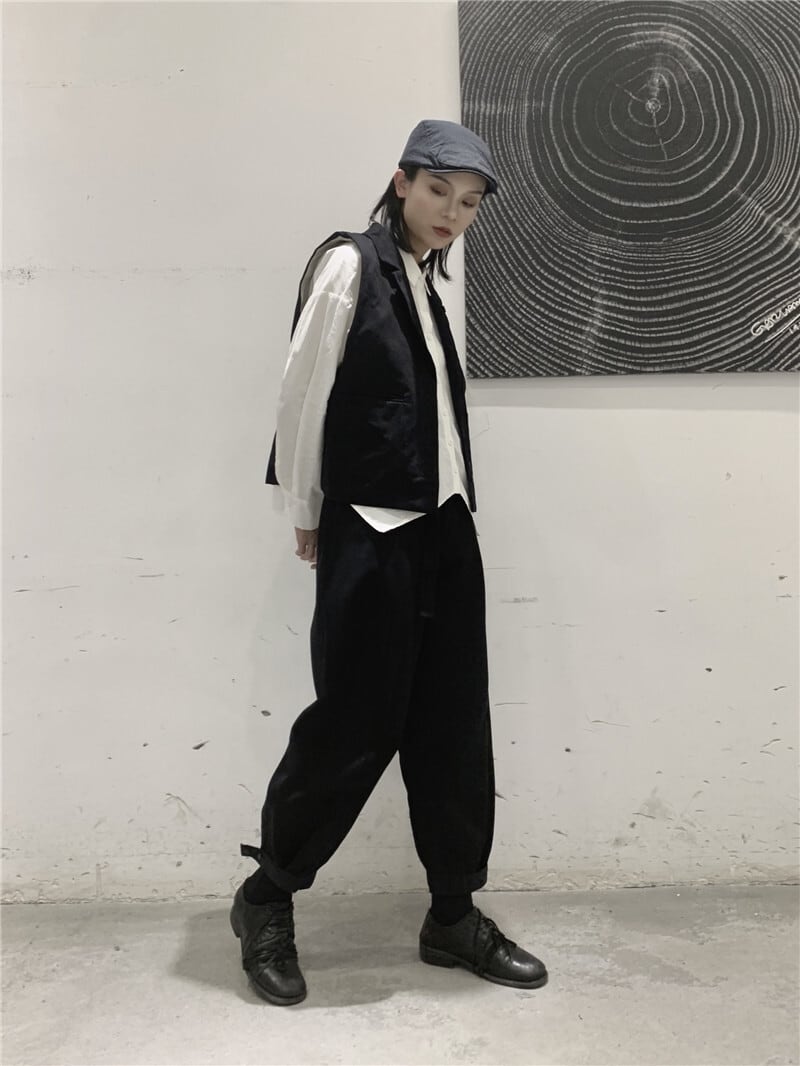 BLACK ANDWHITEダークカジュアルパンツルーズハーレムパンツ細くて厚い秋冬新商品パンツカジュアル ホワイト ブラック オータム 秋物 ウィンター 冬物 BWTB6192785690