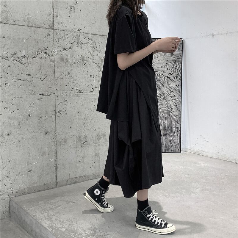 BLACK ANDWHITEダーク半袖ルーズアシンメトリーデザイン男女カップルアモイ ホワイト ブラック BWTB88979457160