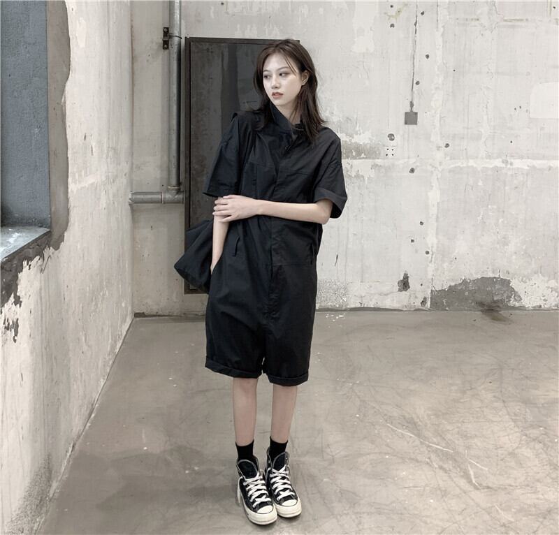BLACK ANDWHITEダークブラックワンピースオーバーオールショーツメンズとレディースのルーズシンショーツ ホワイト ブルマー BWTB90826160574