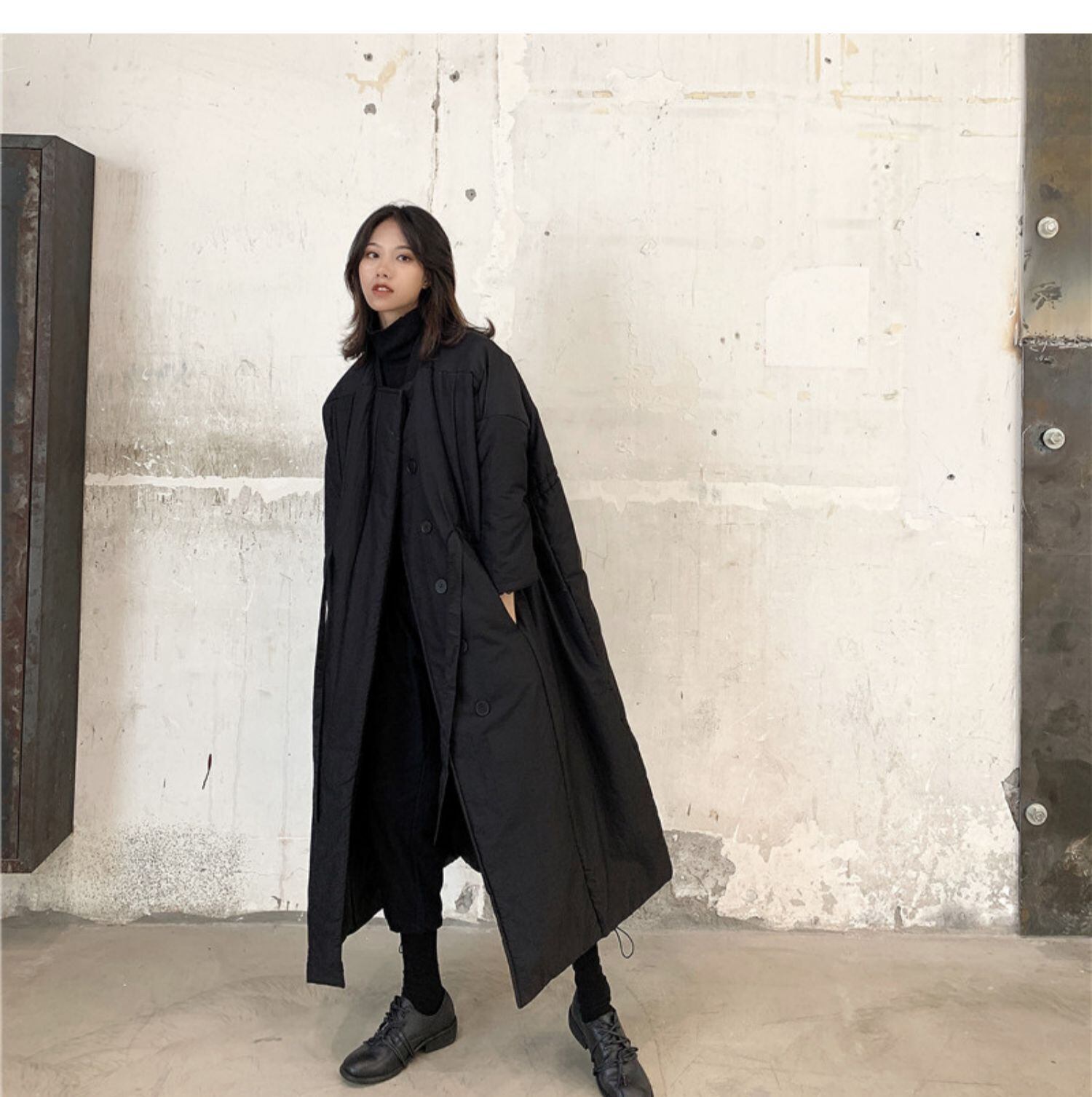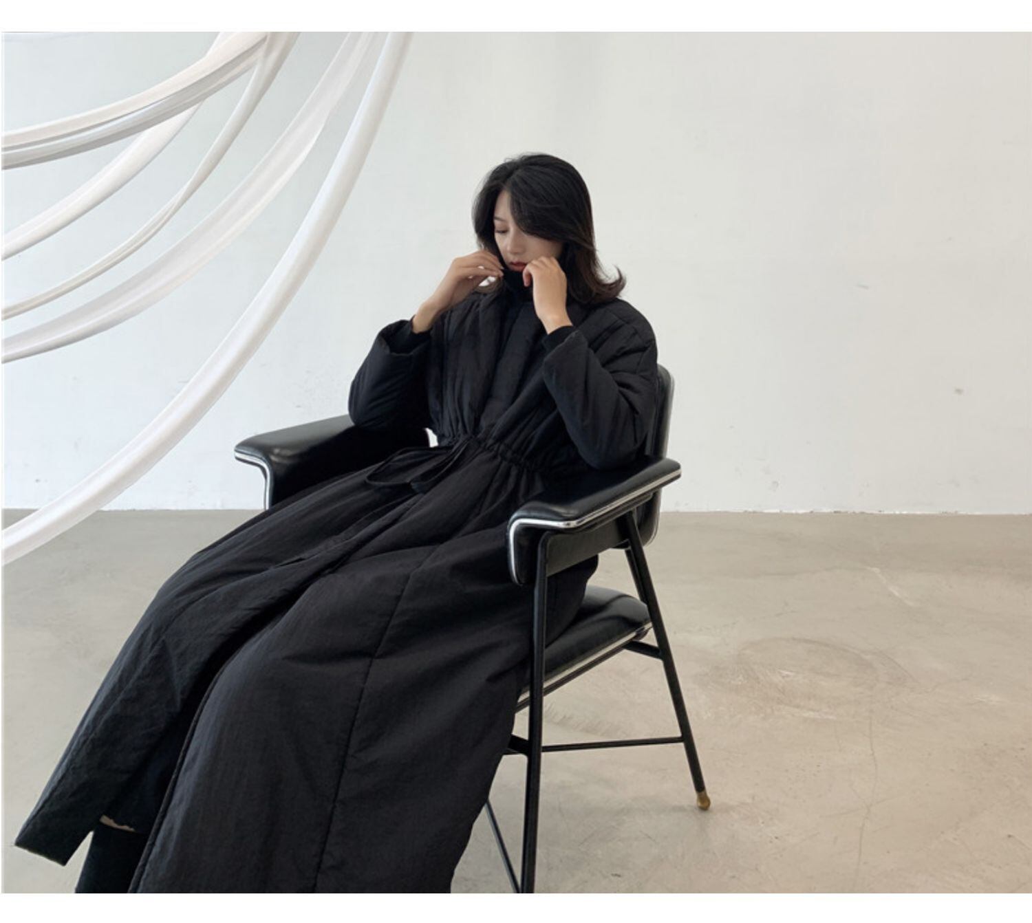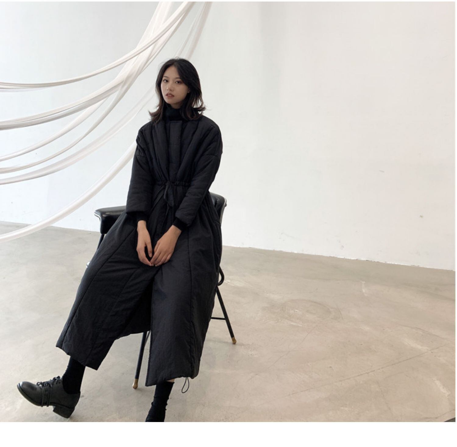 黒と白のダークウィンドパッド入りジャケット女性の膝の上の長いセクション厚いダウンパッド入りジャケットスリムな冬の新しいスタイル ロング ホワイト ブラック ウィンター 冬物 BWTB25203897041