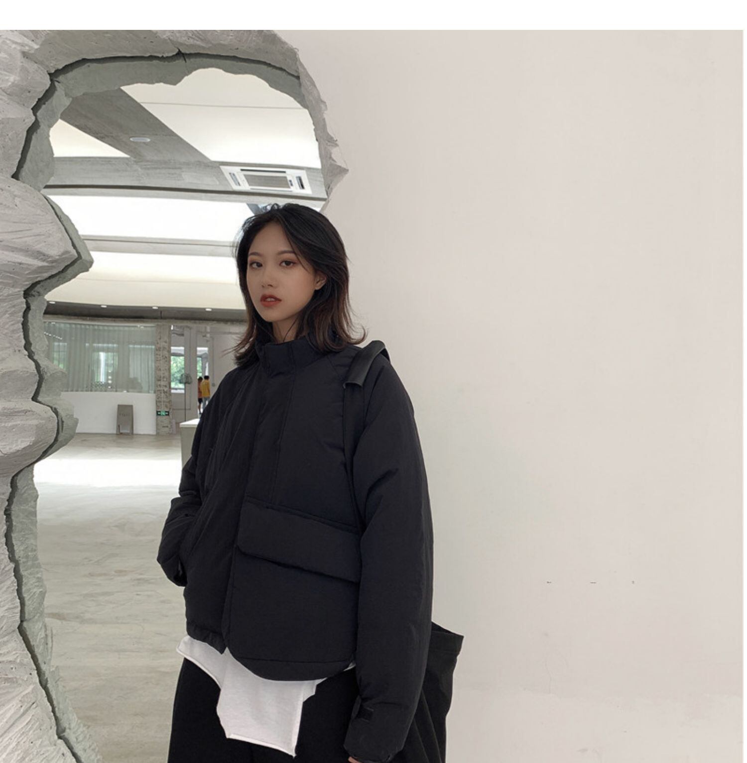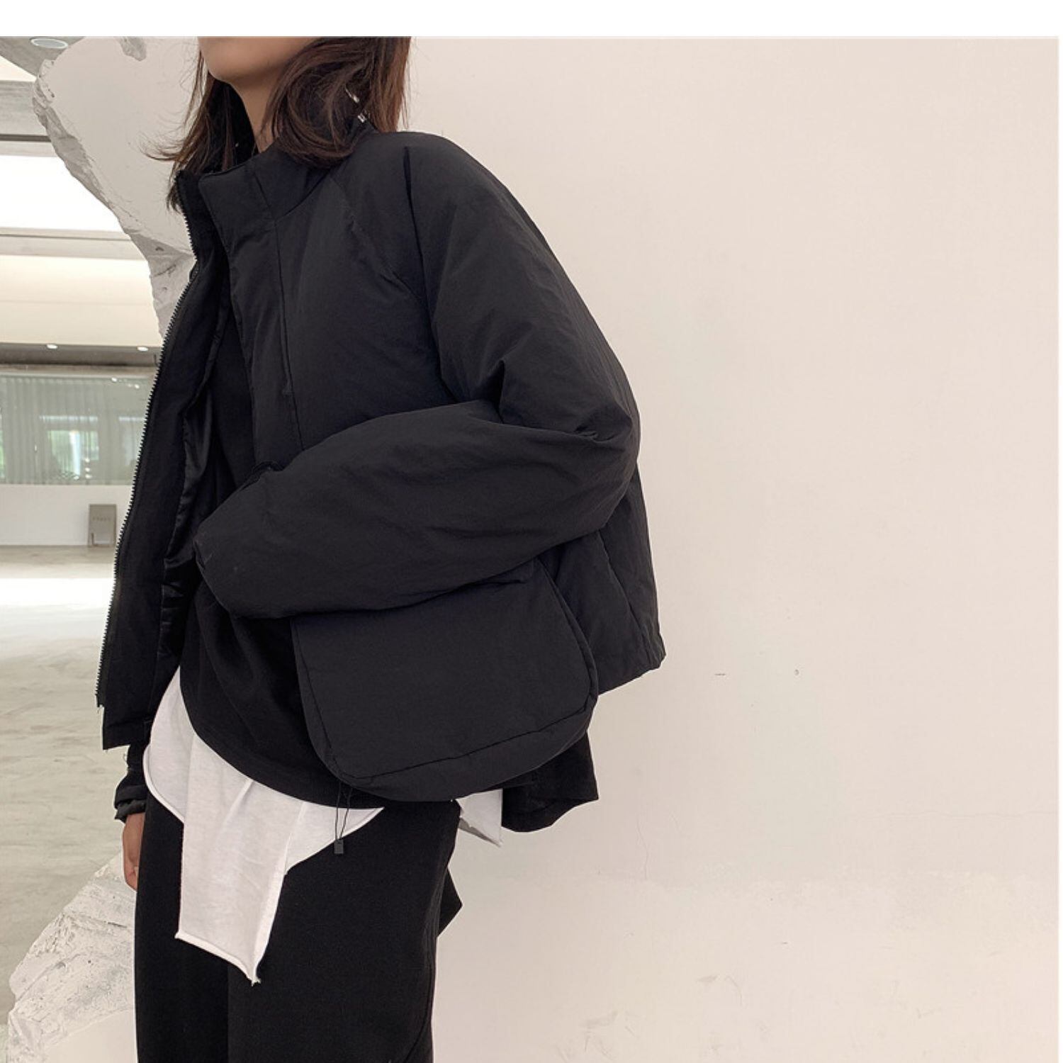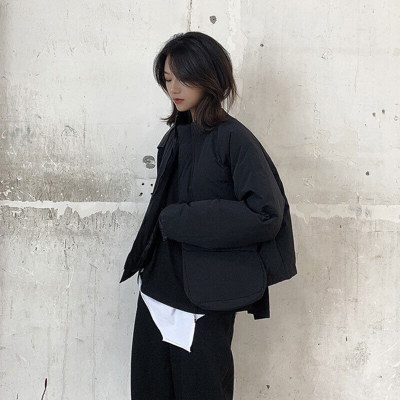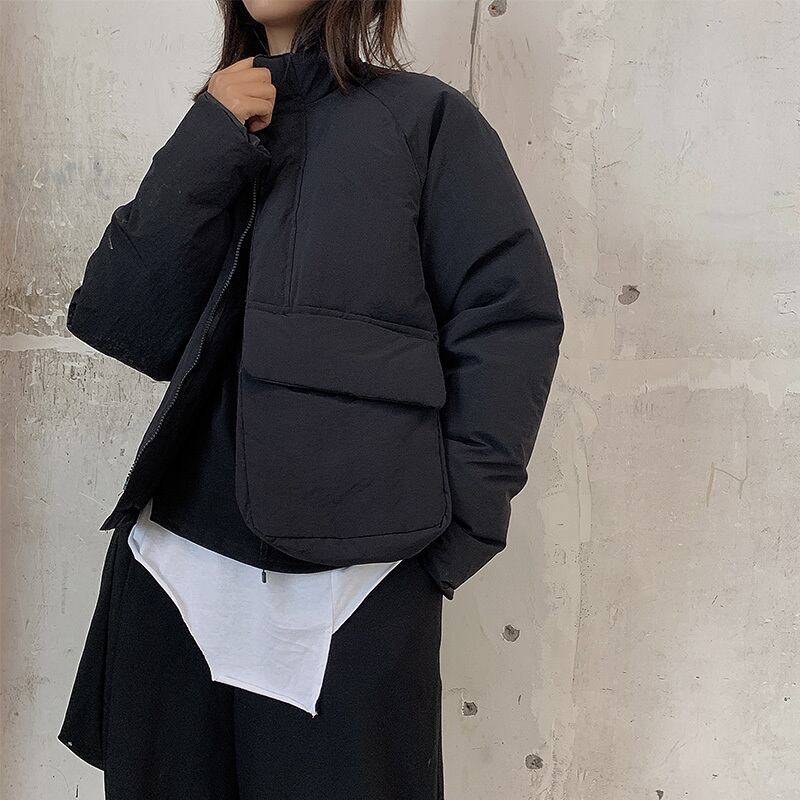 BLACK ANDWHITEダークオリジナルデザインコットンパッド入りジャケットレディースショート厚手イレギュラーコットンパッド入りジャケット冬新作 ホワイト ブラック ウィンター 冬物 BWTB24767420487