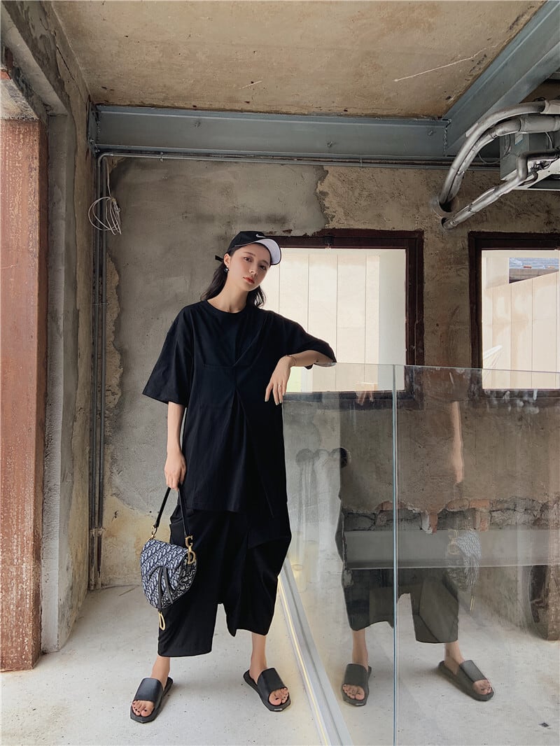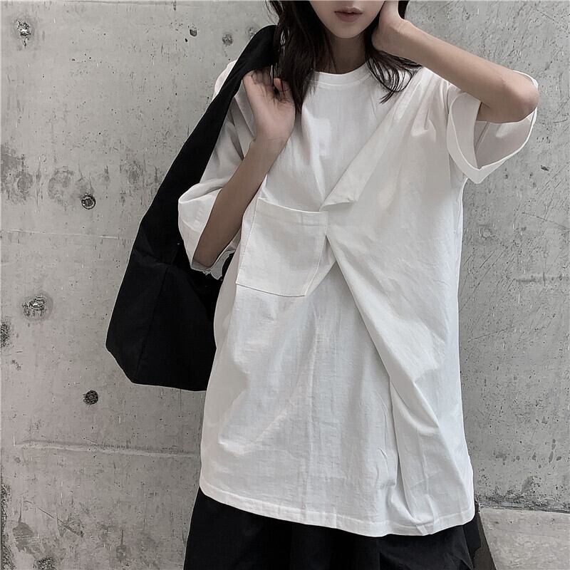 BLACK ANDWHITEダーク半袖Tイレギュラーニッチ香港スタイルルーズカップルサマーニュースタイル ホワイト ブラック 夏物 BWTB88441457207