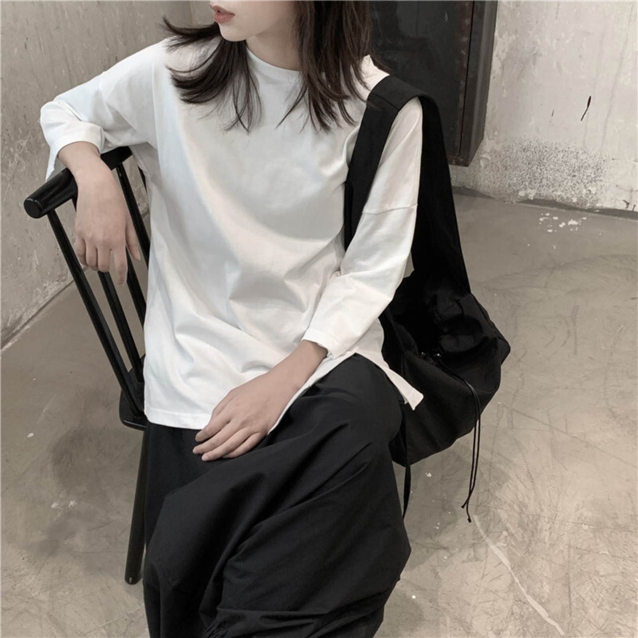 BLACK ANDWHITEダークアシンメトリー男女ルーズスプリット半袖T山本風冷 ショート ホワイト ブラック ハーフスリーブ BWTB83218302143