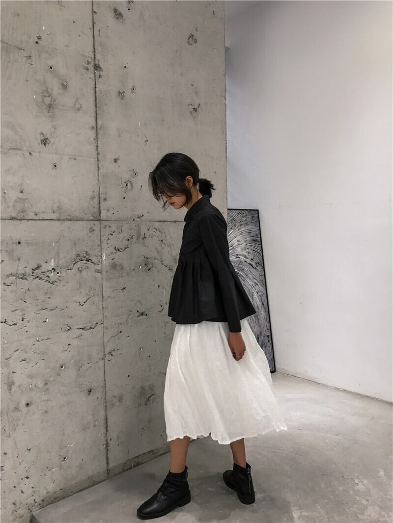 BLACK ANDWHITEダークシリーズプリーツスカートダブルレイヤーホワイトプリーツスカートスカート文芸ファン ブラック BWTB38702737189