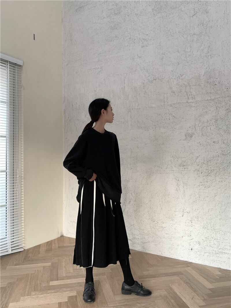 BLACK AND WHITEeseステッチハーフレングススカートレディース厚手のダブルレイヤー秋冬新作伸縮性ウエストミドル丈スカート ホワイト ブラック エラスティック オータム 秋物 ウィンター 冬物 BWTB90038917816