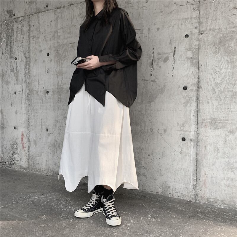BLACK ANDWHITEダークブラックスカートアシンメトリーデザイン ホワイト BWTB47521592993