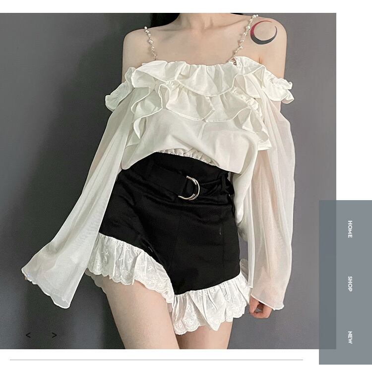 【送料無料】 pinksaviorスプレーレーススタックワンショルダーパールチェーン日焼け止めクールトップ 真珠 PSTB27667956719