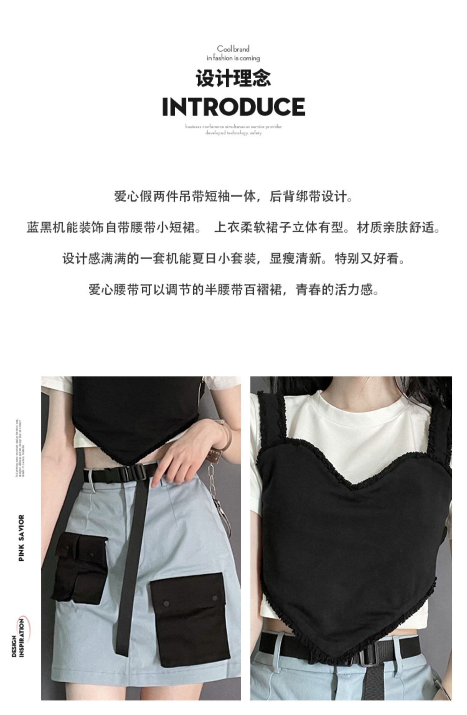 【送料無料】 pinksavior青と黒のステッチデザインハーフスカートフェイクツーピースラブシャツネクタイスーツ ブルー ブラック PSTB59234982699