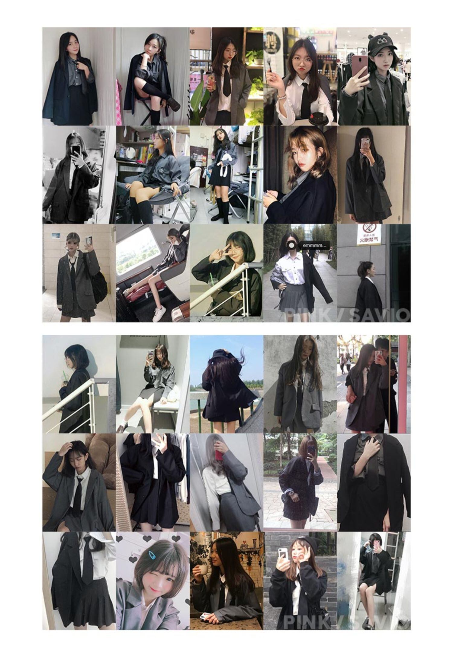 色:黒のカジュアルスーツ,グレーのカジュアルスーツ,グレースカート,黒スカート