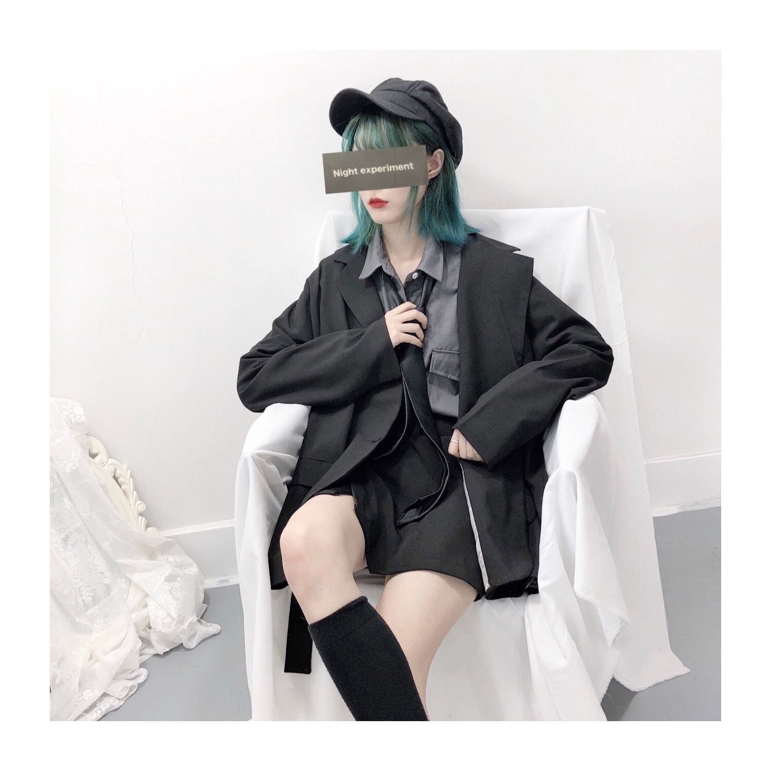 【送料無料】 pinksavior黒とグレーの2色ドレープカジュアルスーツスーツレディーススーツハーフスカートデザインセンス気質スーツ ブラック PSTB82586127099