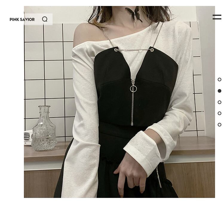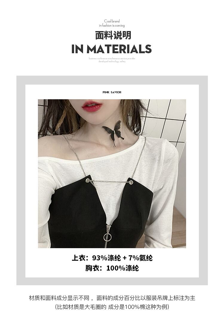 色:白の透明な日焼け止めトップ,ブラックチェーンコルセット