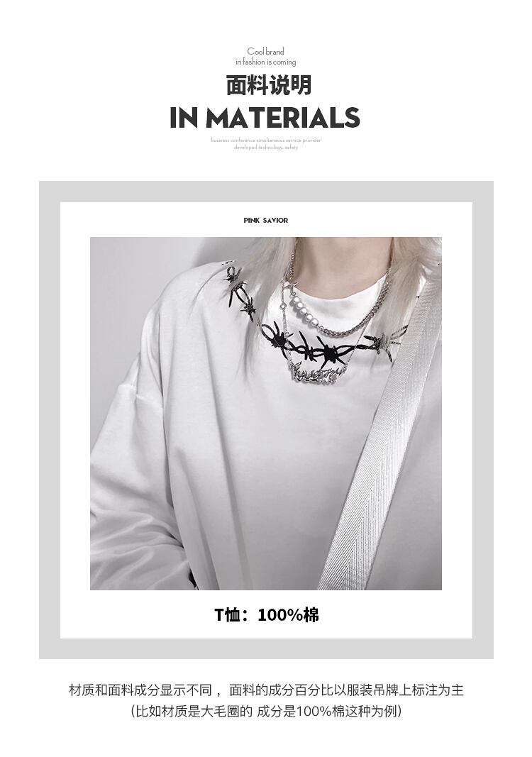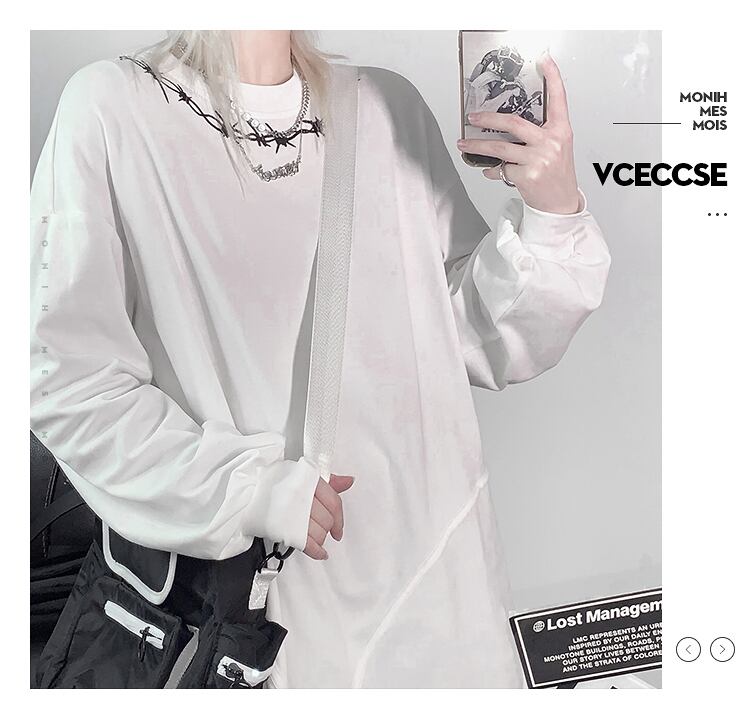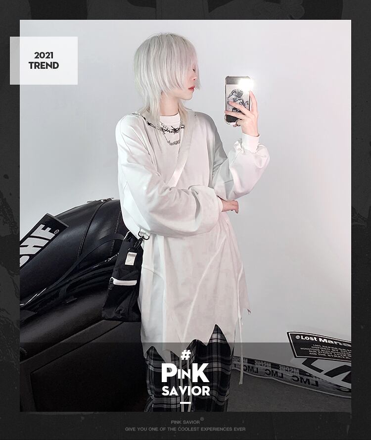 【送料無料】 pinksavior春オールマッチスペシャル裾破れたエッジデザインとげのセンスが長袖Tシャツコットンの内側にプリント ロング スプリング 春物 PSTB63699643713