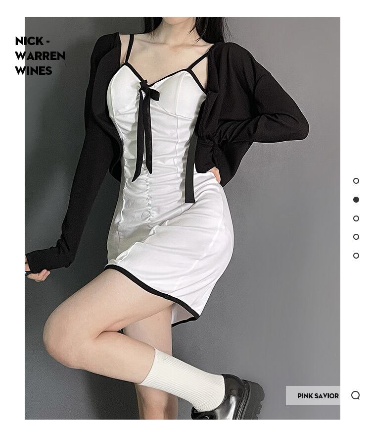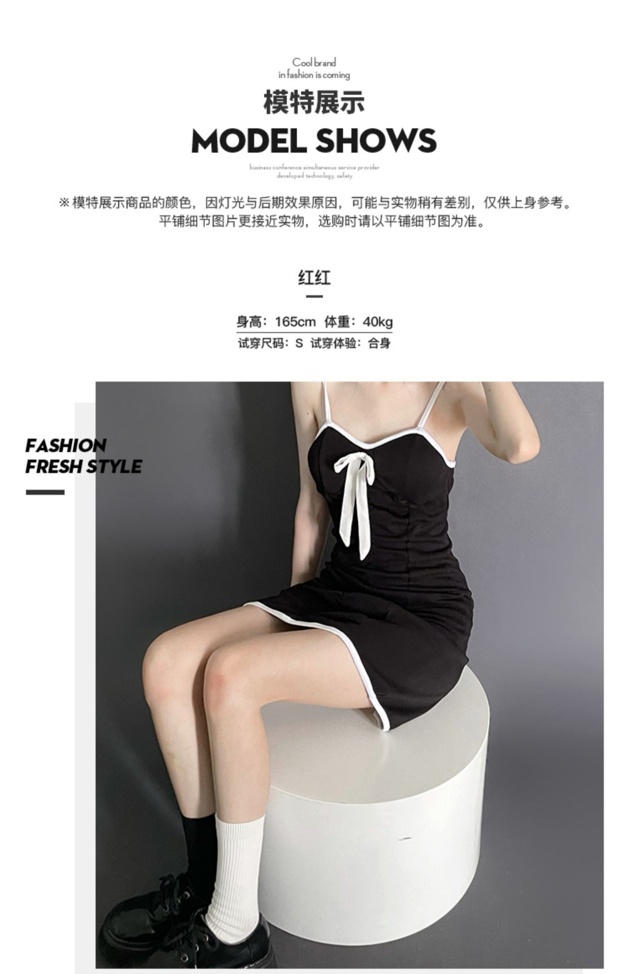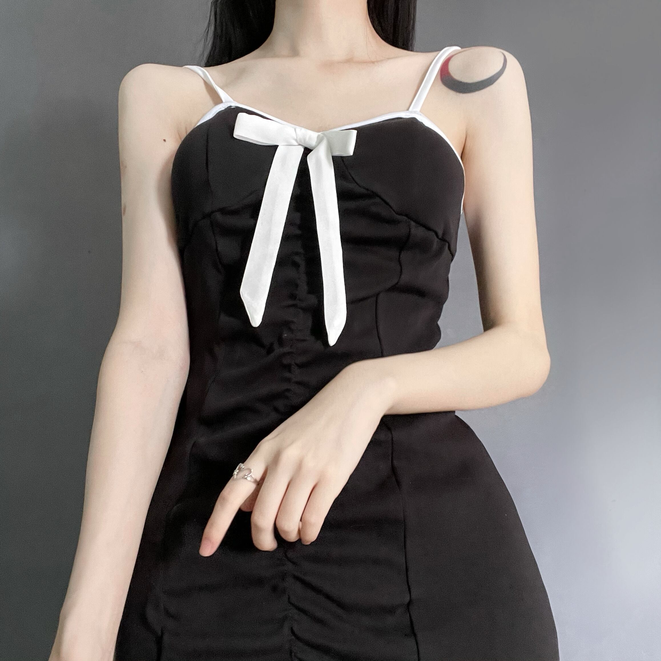 pinksavior [ココア]夏のBLACK AND WHITEの装飾的な蝶ネクタイサスペンダースリムストレッチ純粋な欲望の黒のドレス ピンク ホワイト ブラック リボン サマー 夏物 ピュア PSTB38102879087